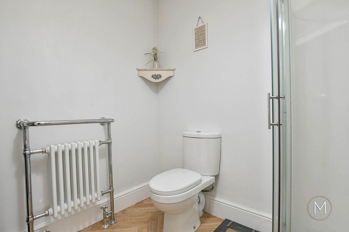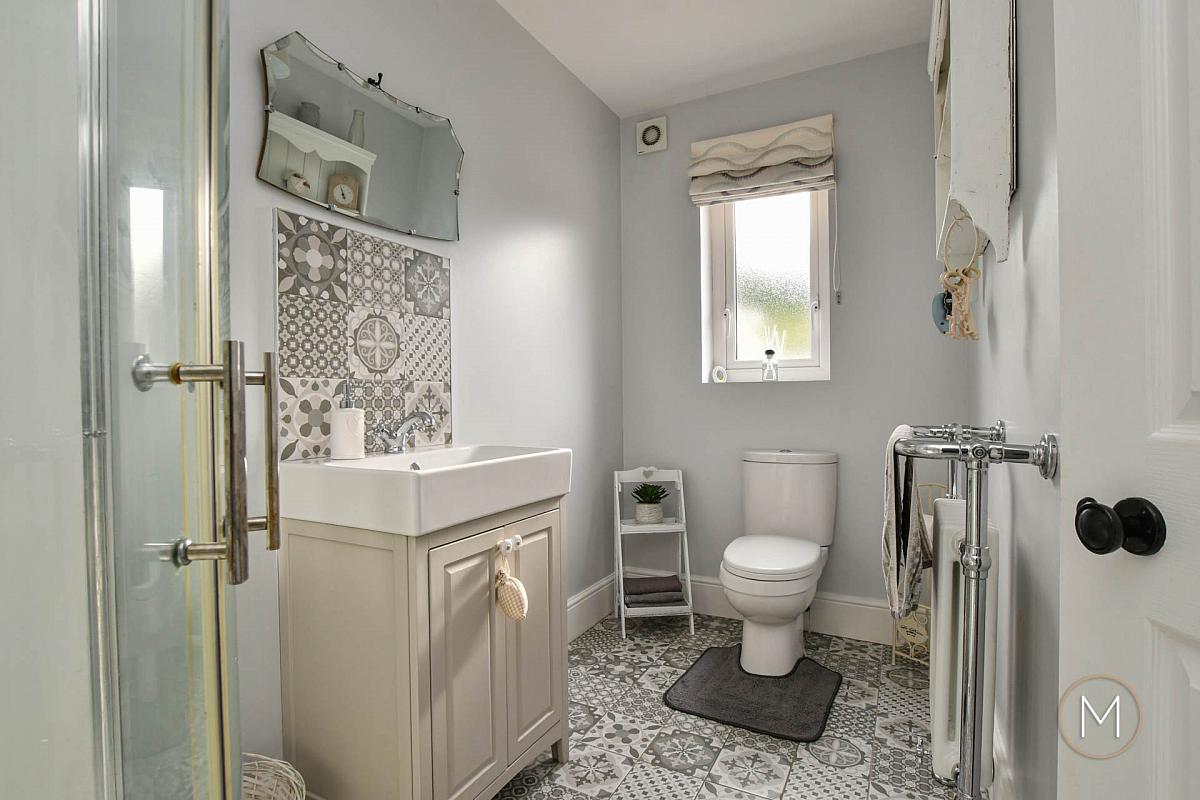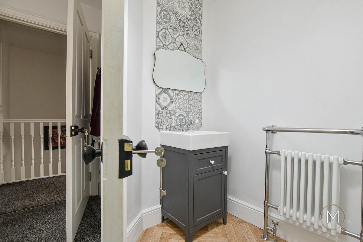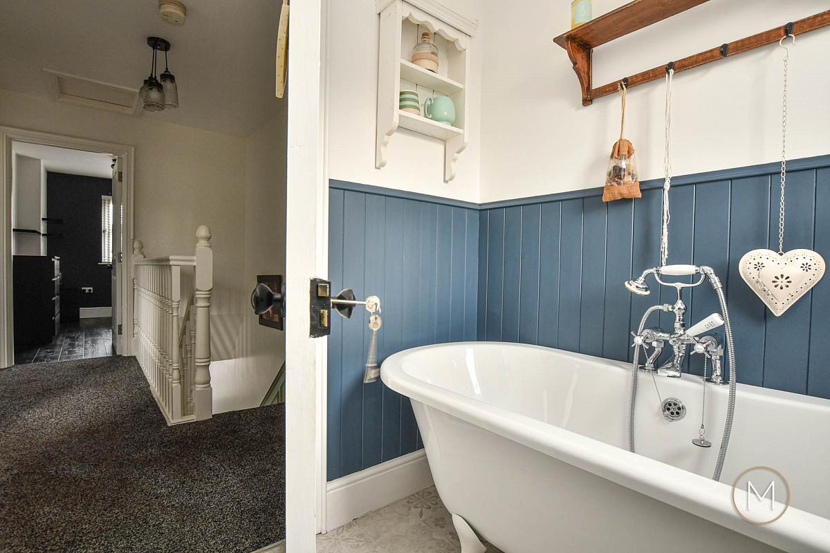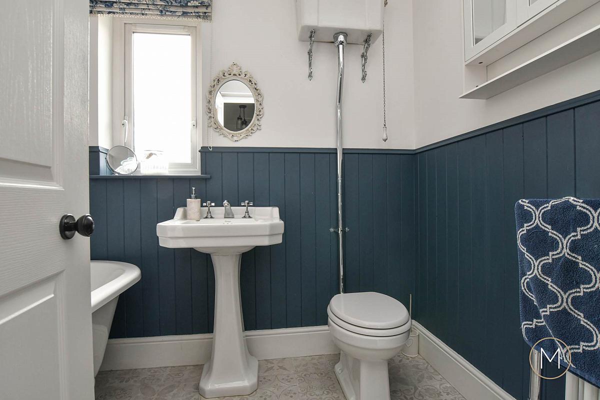 Upstairs, you`ll find three well-proportioned bedrooms, each beautifully presented. The master bedroom benefits from a contemporary ensuite shower room, while the main bathroom exudes boutique hotel charm, complete with a freestanding bathtub, elegant wall panelling and modern finishes.