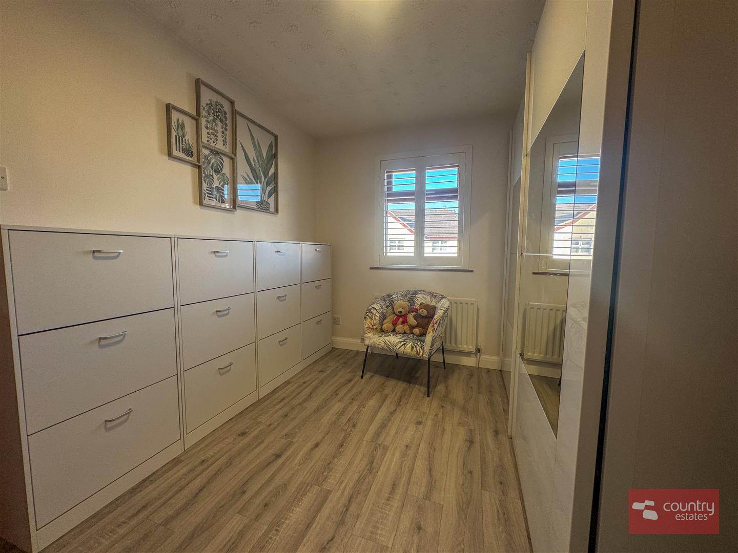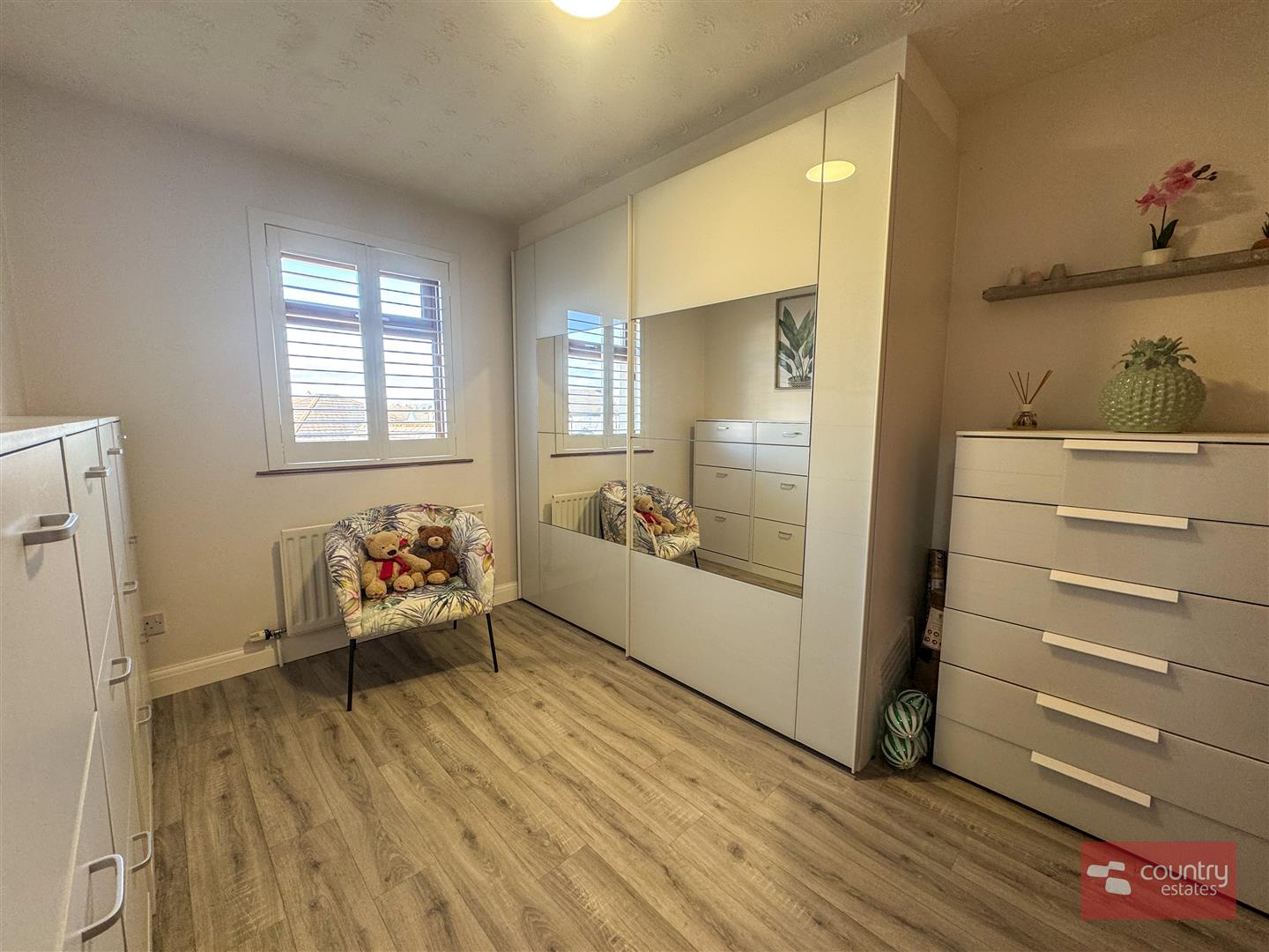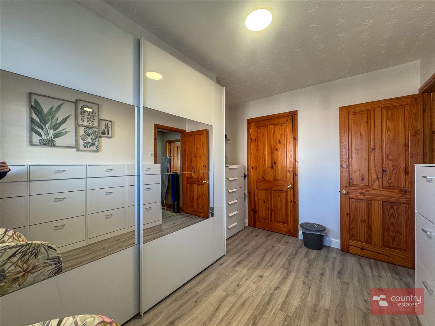 Fitted mirrored slide robes. Built in storage cupboard.