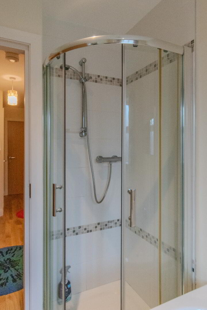 BATHROOM with four piece suite to include mains shower, bath, wash hand basin & low-flush wc