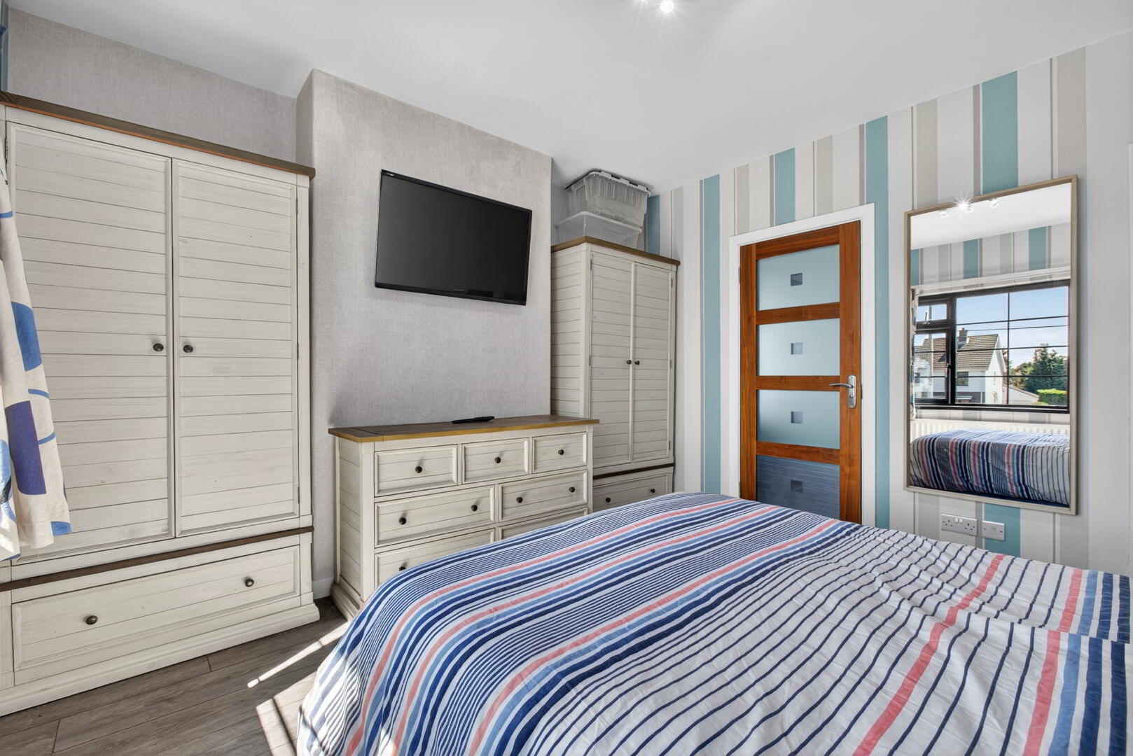 uPVC double glazed window to front, radiator, laminated flooring, TV point, built in wardrobes and cupboards, coved ceiling