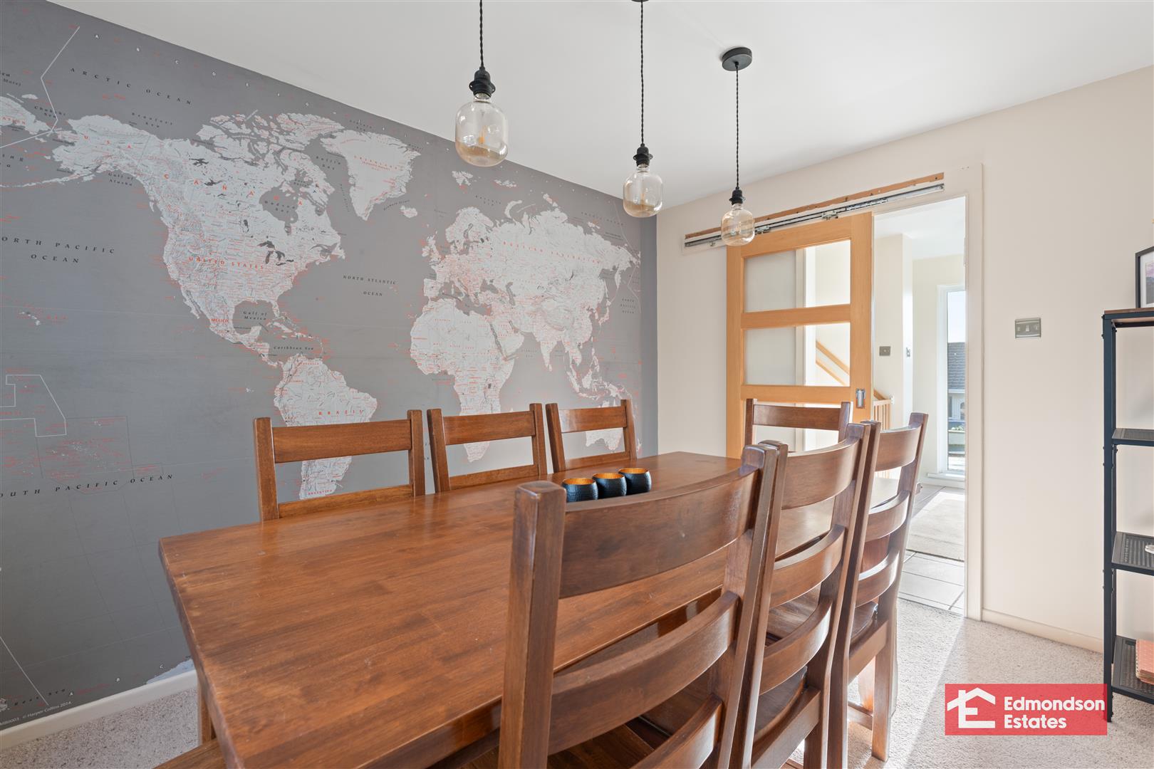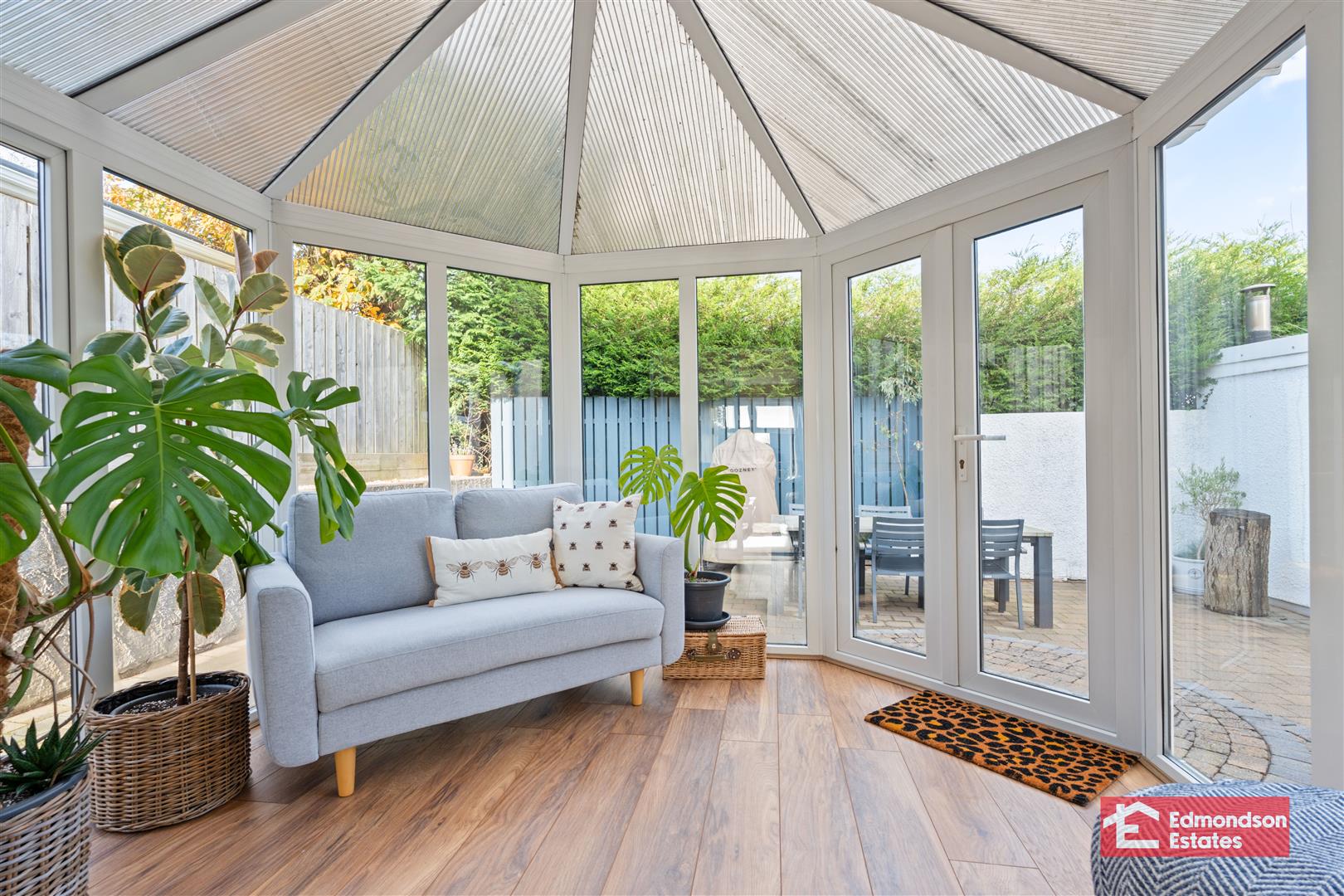 Internally the property comprises an entrance hall, lounge, dining room, conservatory, kitchen with informal dining area, three generous bedrooms and family bathroom.