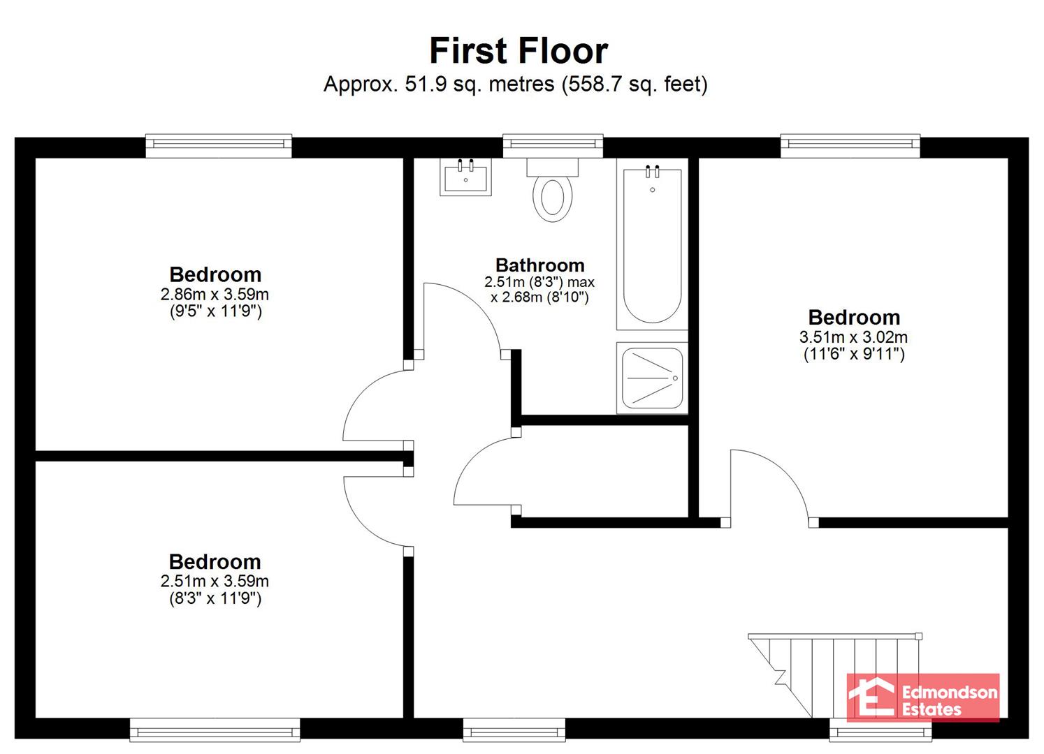 BEDROOM 3 11'9 X 8'3 (3.58m X 2.51m)