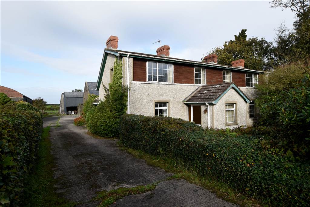 The farm dwelling comprises of an entrance porch, entrance hall, two reception rooms, kitchen with dining area, five bedrooms (one en suite), shower room, oil fired central heating, double glazed windows, mature gardens, vegetable patch, and concreted yard.