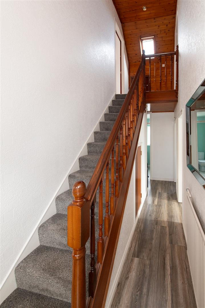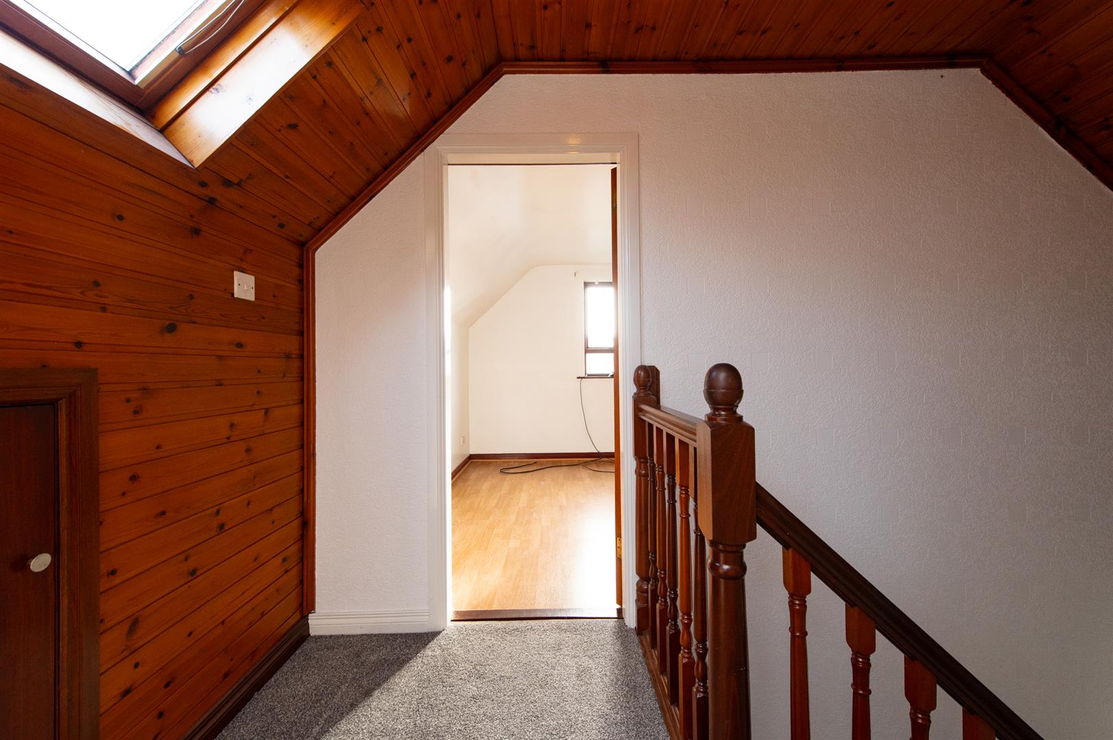 Stairs and landing laid with carpet. Bedroom one a great sized main bedroom with laminate flooring, side view aspect and eave storage. Bedroom two with laminate flooring, skylight window and eave storage.