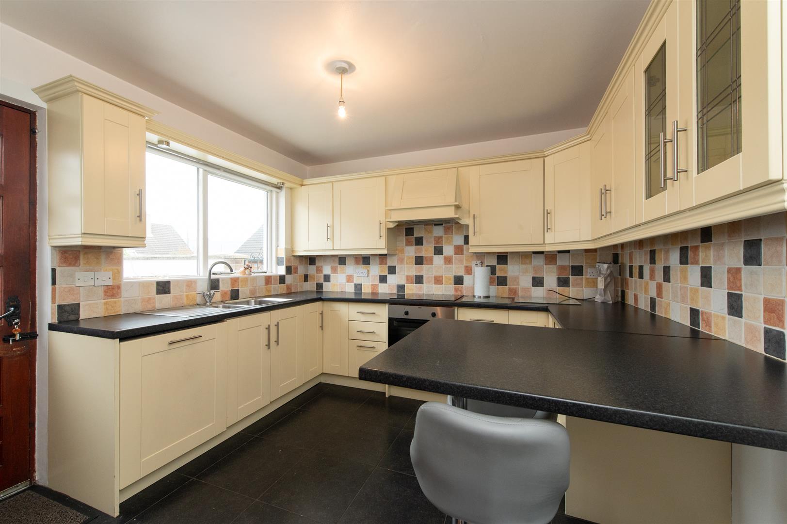 Entrance hallway with laminate flooring, leading to roomy, bright lounge with laminate flooring, open fire and floor to ceiling windows. Fitted Kitchen comprising integrated dishwasher, hob & oven. Breakfast bar area with tiled flooring throughout and rear door access. Ground floor shower room incorporating shower cubicle, W.C & wash hand basin to include vanity beneath and tiled flooring. Dining area or fourth bedroom with laminate flooring and rear view aspect. Ground floor bedroom again with laminate flooring.