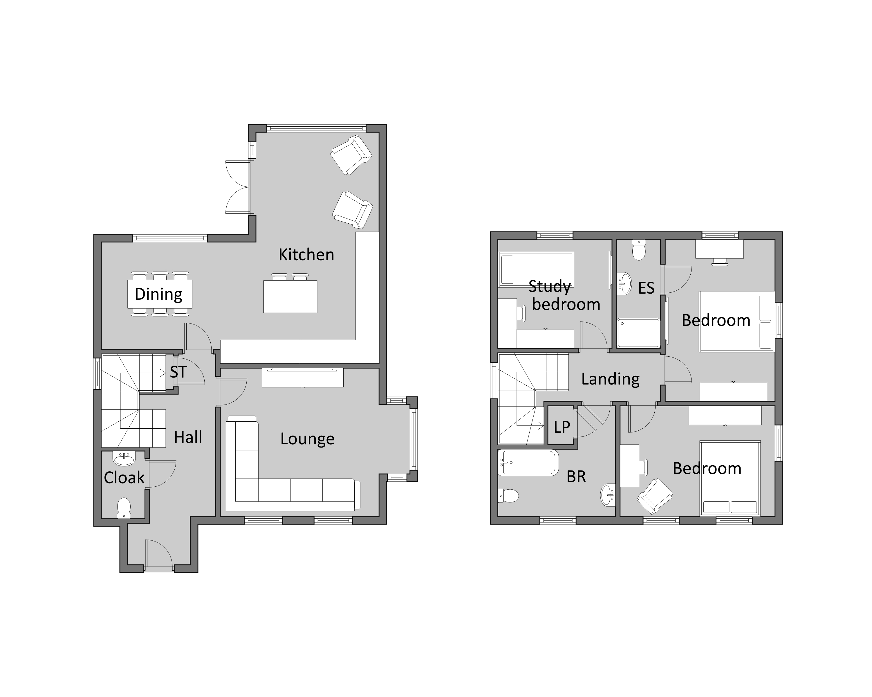 Upstairs, there are three generously proportioned bedrooms, including a principal suite with a private en-suite shower room and modern bathroom servicing the other two bedrooms.
