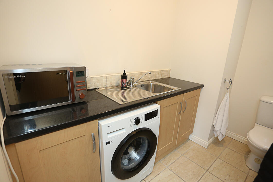 With range of low level units, laminate work surfaces, single drainer stainless steel sink unit with mixer taps, plumbed for washing machine and low flush WC, excellent storage.