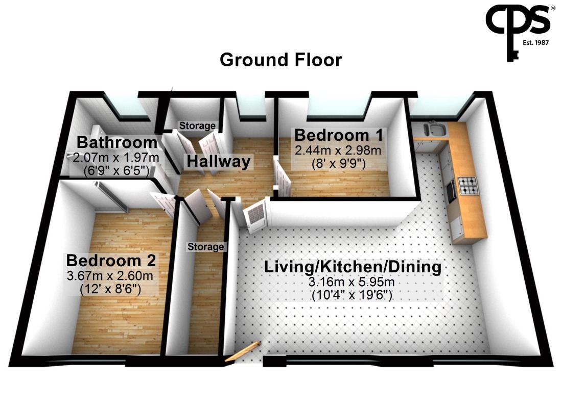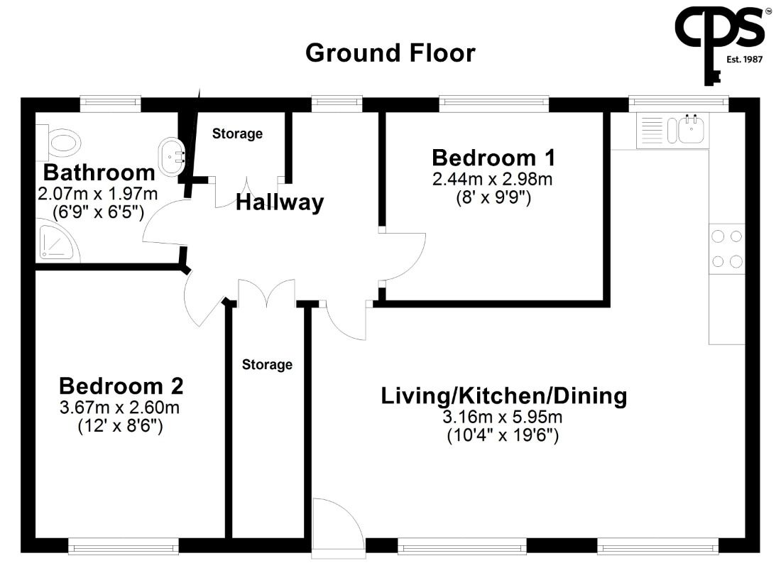 Bedroom 2 (2.60m x 3.67m)