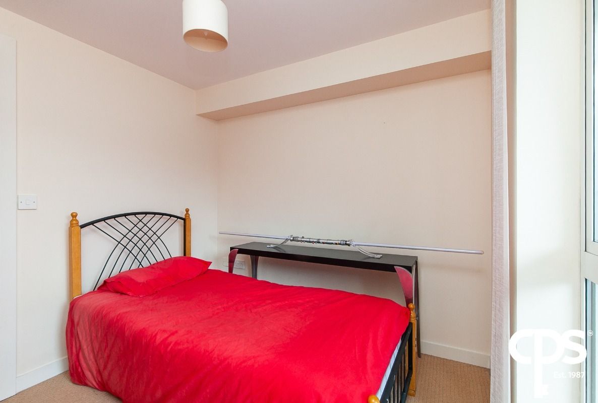 This spacious double bedroom has carpet flooring throughout and neutral décor. This master bedroom benefits from a private balcony overlooking Belfast City Centre.