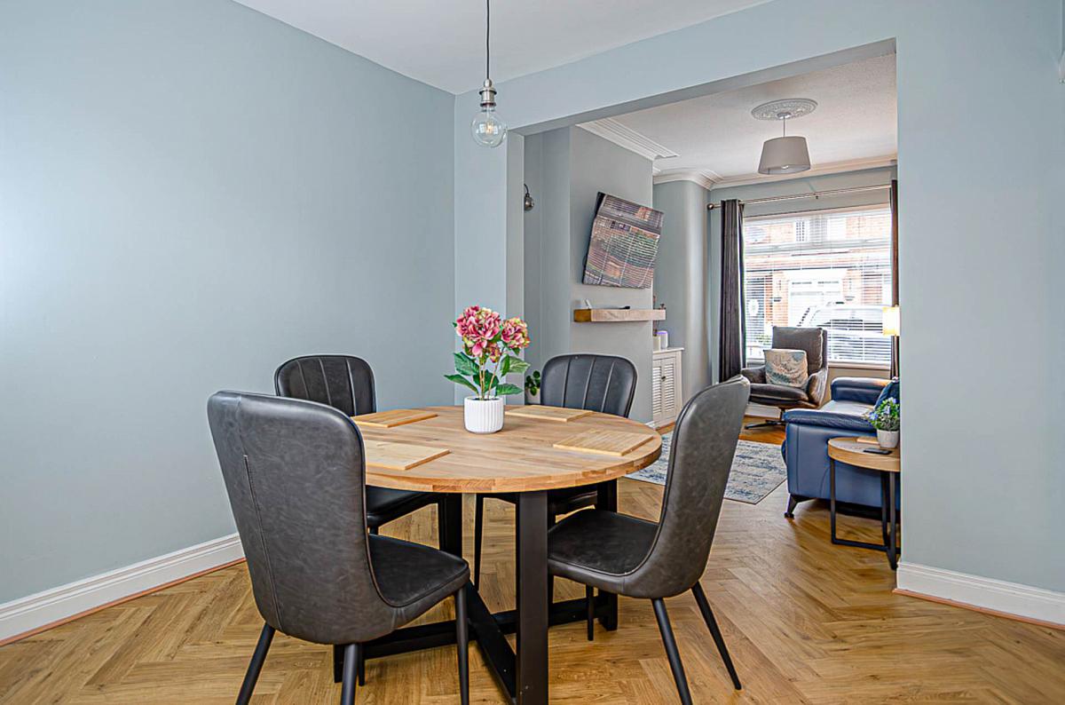 The property opens with a welcoming entrance hall retaining original features, leading to a bright through lounge with a bay window, creating a spacious and inviting living area. To the rear, a large modern kitchen offers excellent storage, contemporary fittings, and ample dining space perfect for both family life and entertaining.