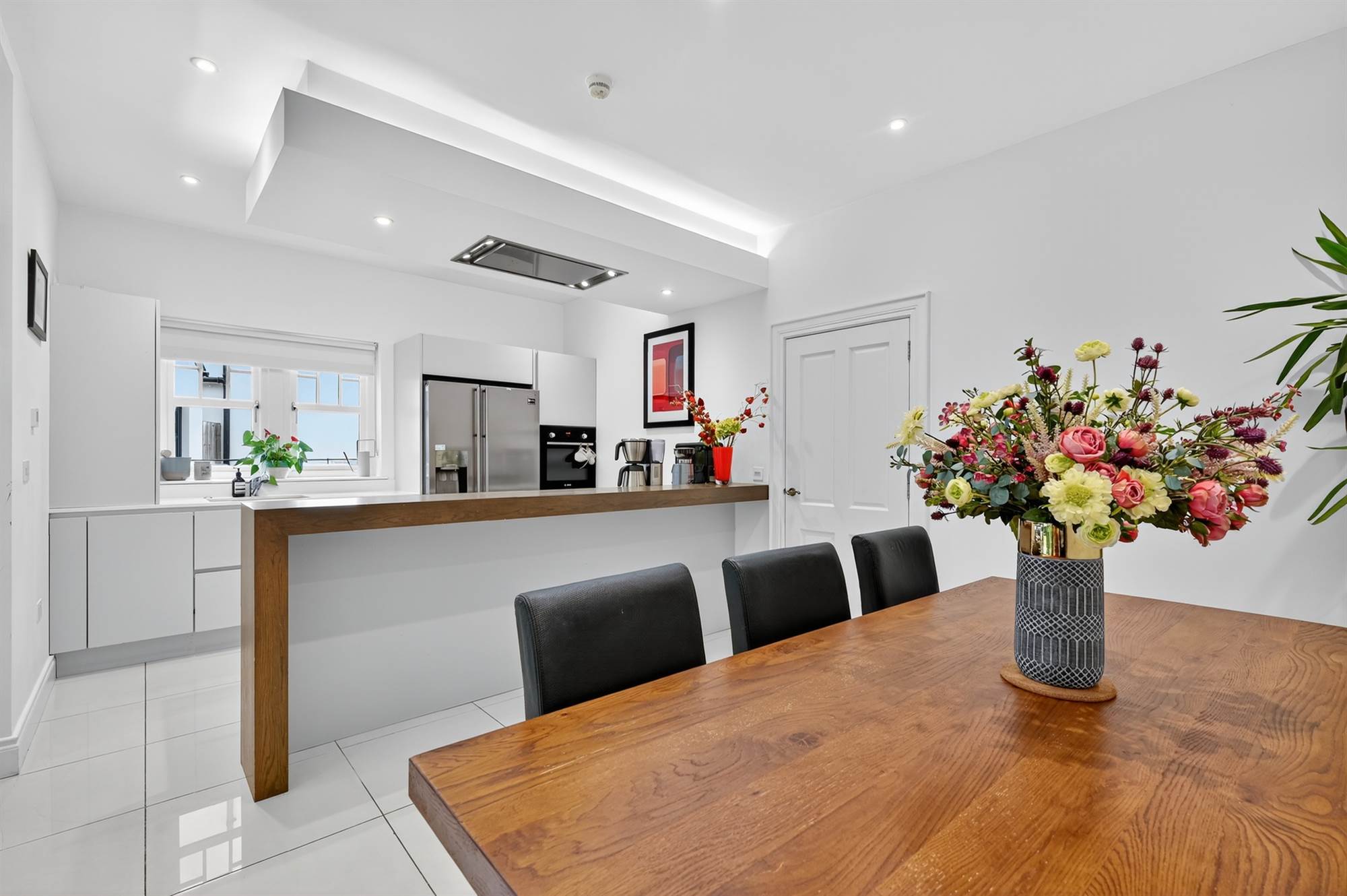 Modern Open Plan Kitchen Diner with Range of Contemporary Units, Integrated Appliances and Ample Space for Family Dining