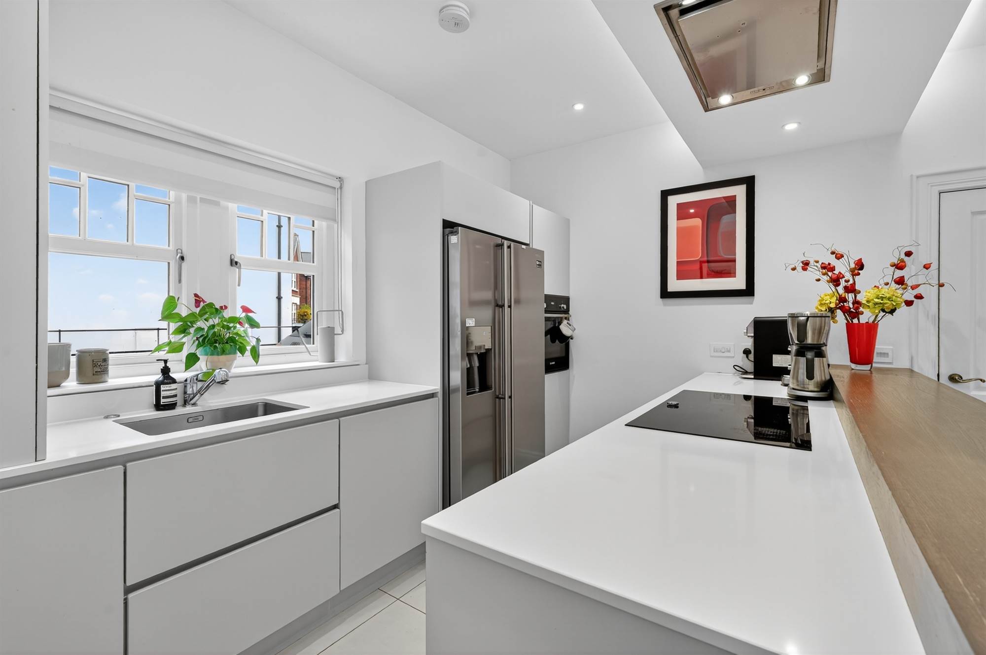 At widest points. Oak fully fitted kitchen with range of high and low level units, Quartz stone worktops, built in 4 ring ceramic Neff hob with extractor fan above, space for fridge/freezer, built in high level oven and grill, integrated dishwasher, inset sink with pull-out chrome mixer tap, access to gas boiler, breakfast island with built in storage and breakfast bar, polished tiled floor, ample space for casual dining, arch way to...