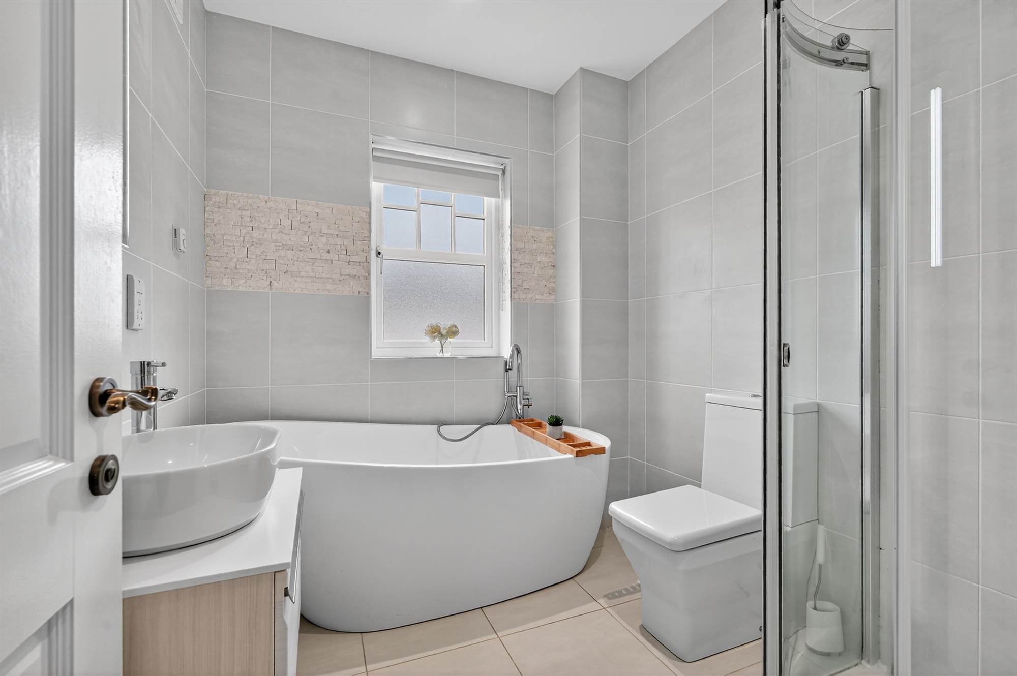 Family Bathroom with Modern White Suite and Attractive Finishes
