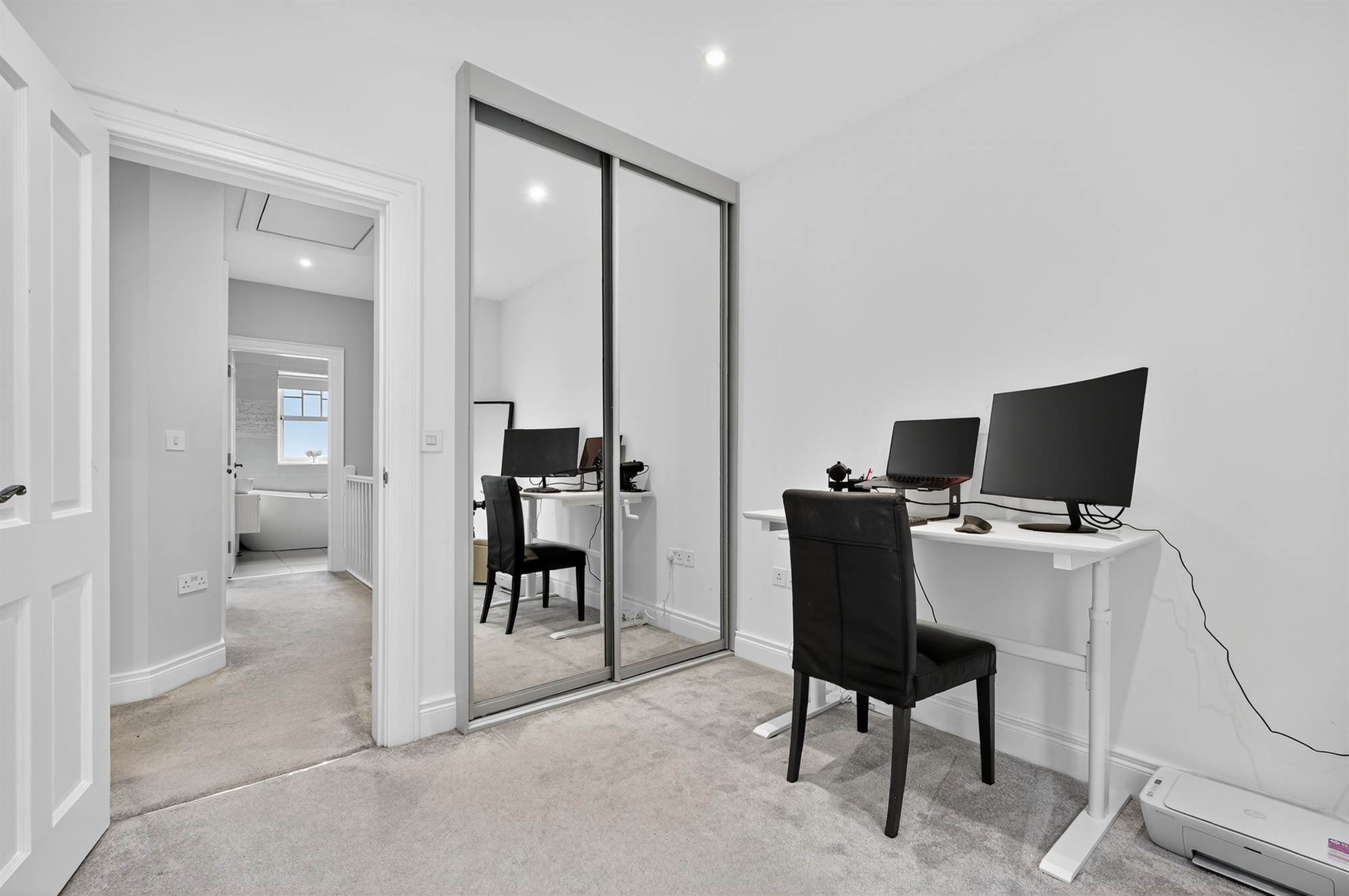 Upstairs, there are three generous bedrooms, including a principal suite with a stylish en suite shower room. A contemporary family bathroom completes the first floor.