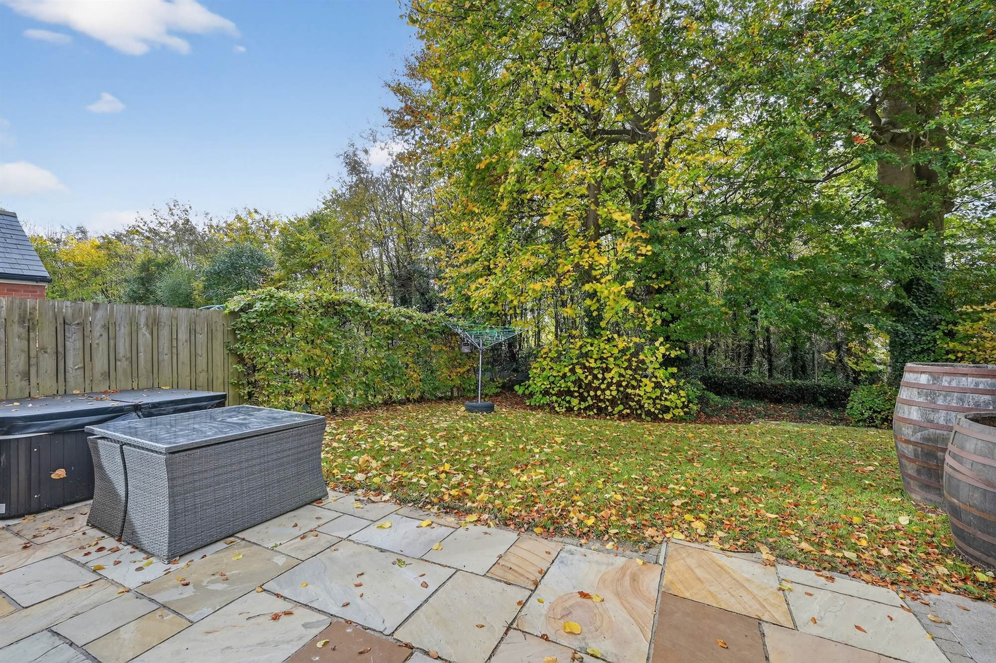 Externally, the property enjoys a spacious driveway providing ample off-street parking, along with a detached garage offering additional storage or potential for a home workspace. The enclosed rear garden offers a private outdoor space with pleasant views over the surrounding woodland, creating a tranquil backdrop for relaxation.