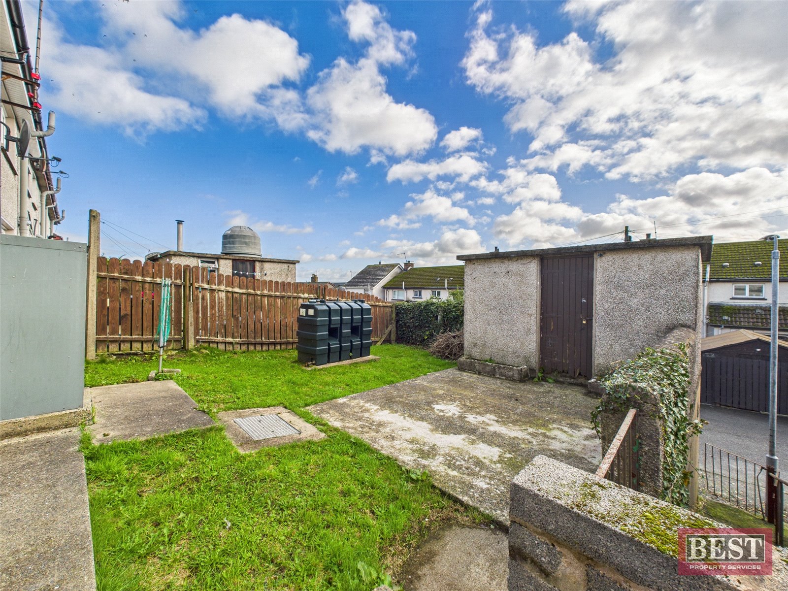 Externally, the property benefits from PVC double glazing, oil-fired central heating, a rear garden with garden store, and a garage accessible via steps at the rear.
