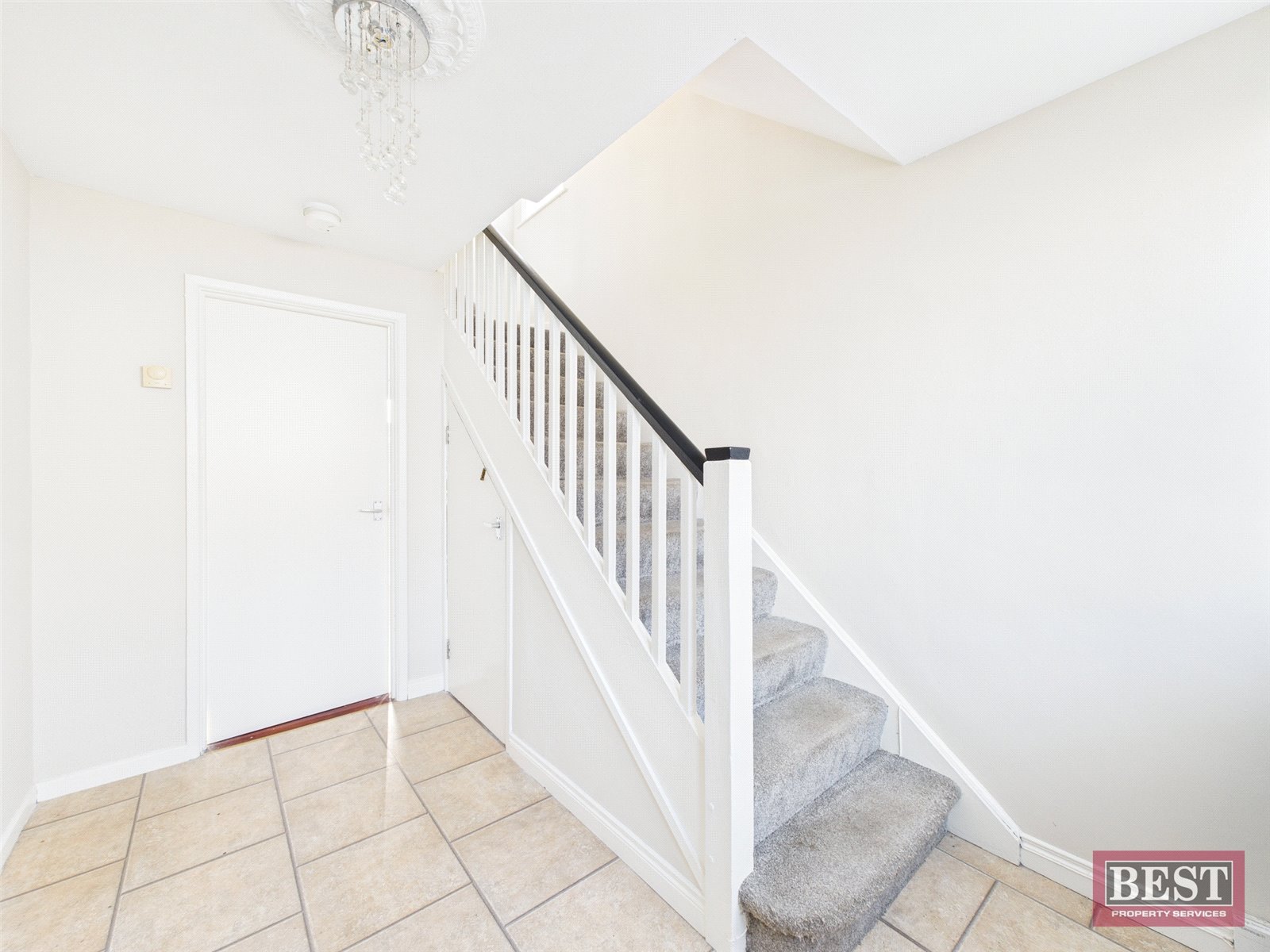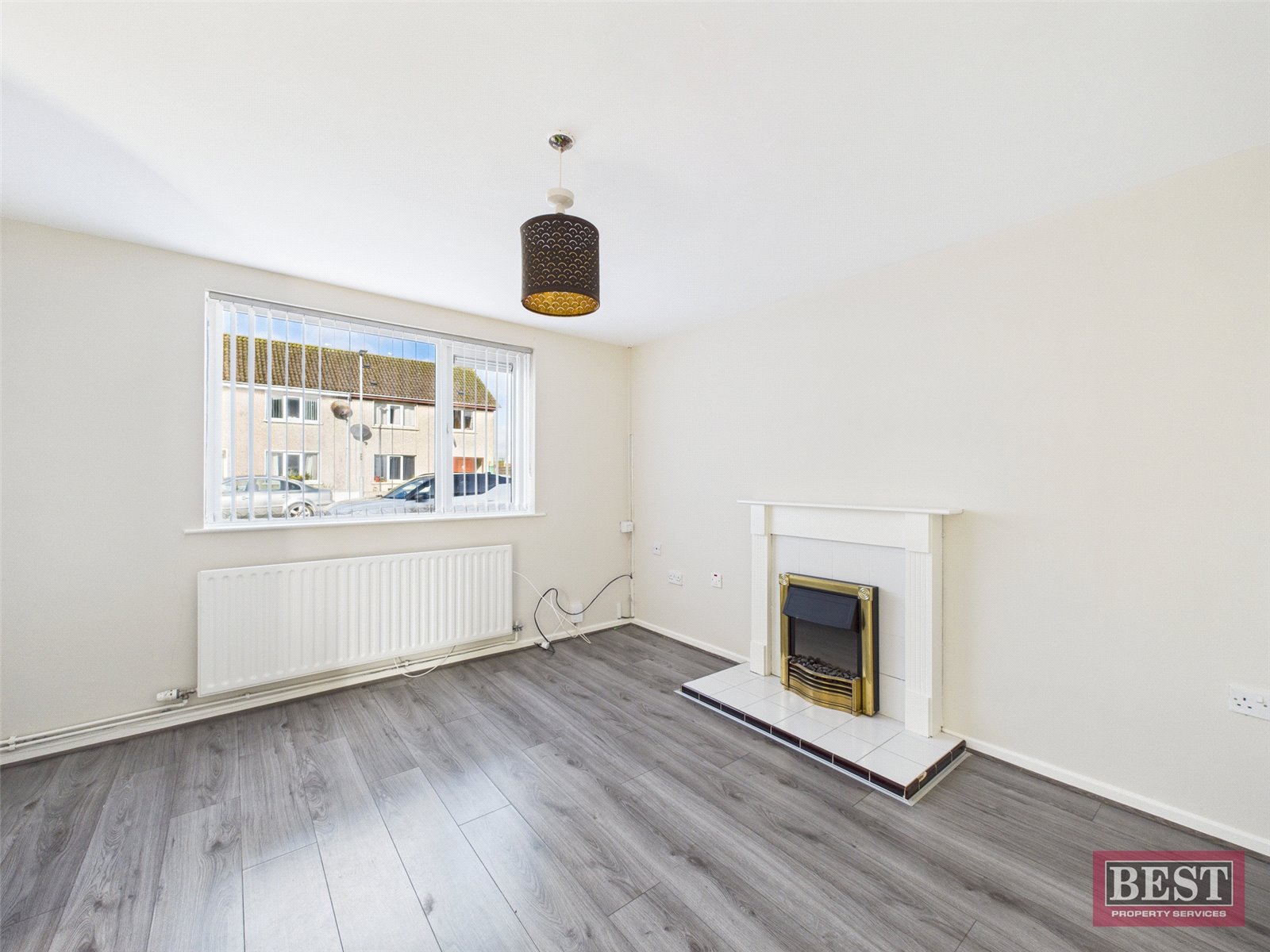 Upon entering, you are welcomed by a bright entrance hall with carpeted staircase, and useful under-stair storage. The spacious front-facing lounge features laminate flooring and a faux fireplace with an electric fire inset, creating a cosy focal point.