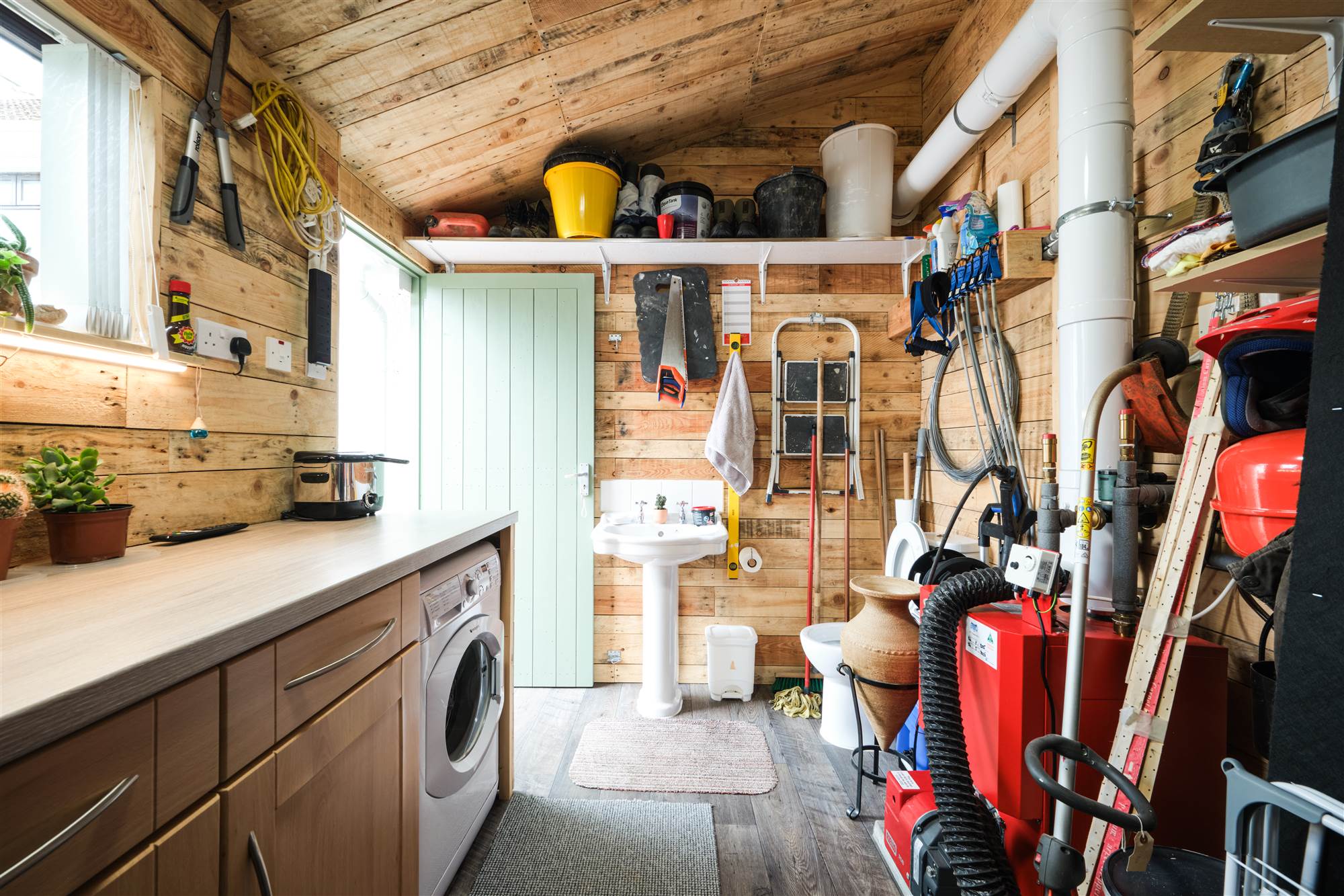 With tiled floor and PVC pedestrian door to rear.