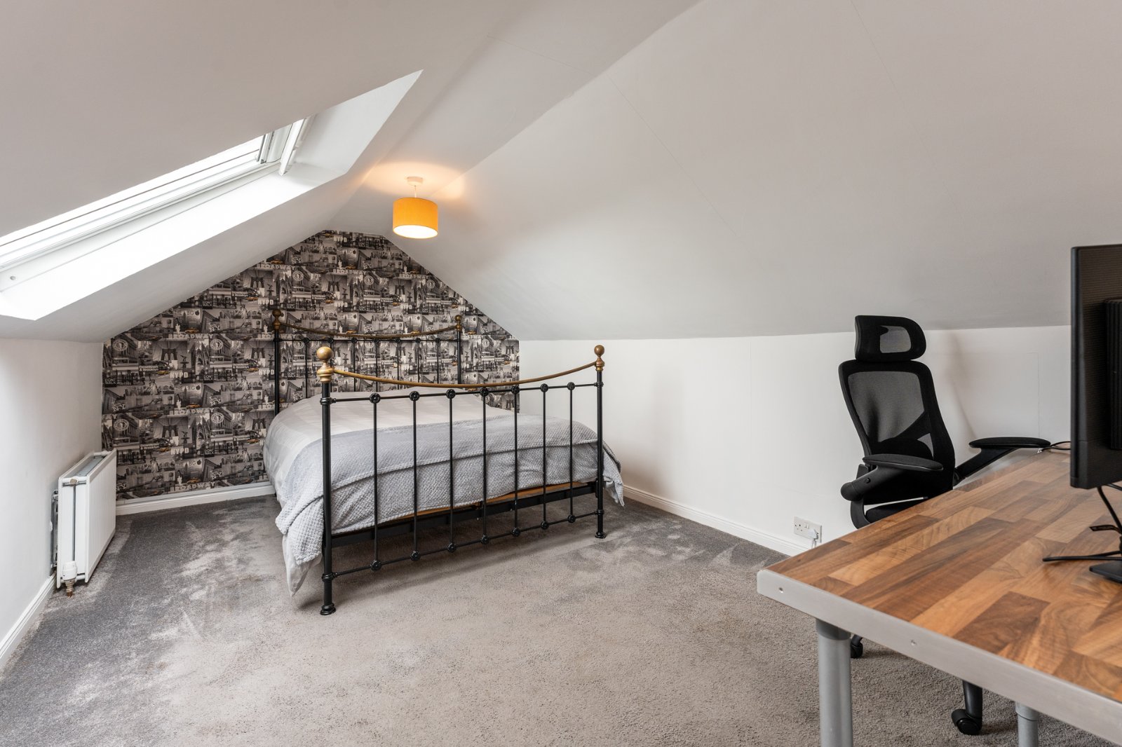 Plastered, decorated, light and power, radiator, large velux window, eaves storage.