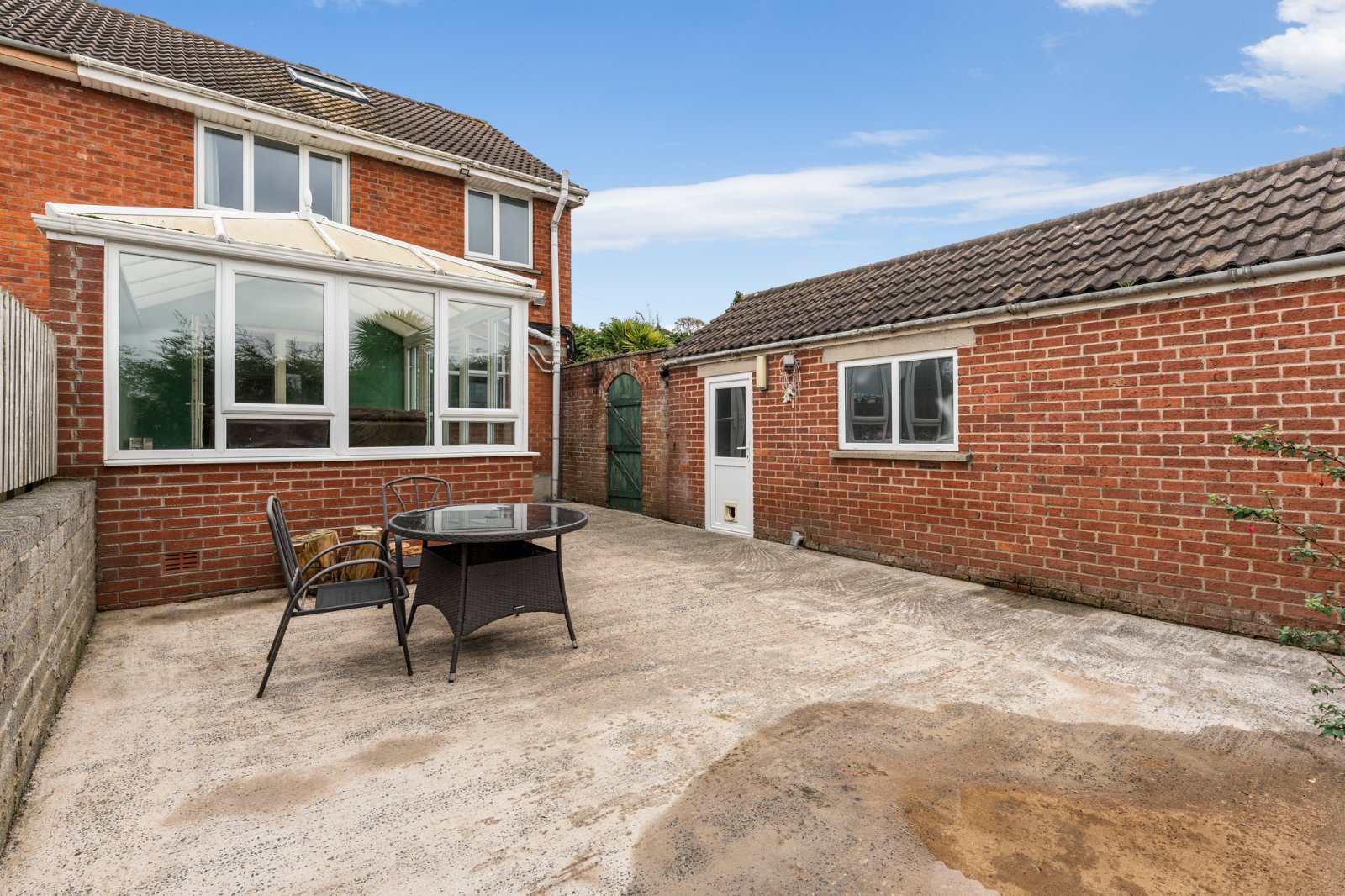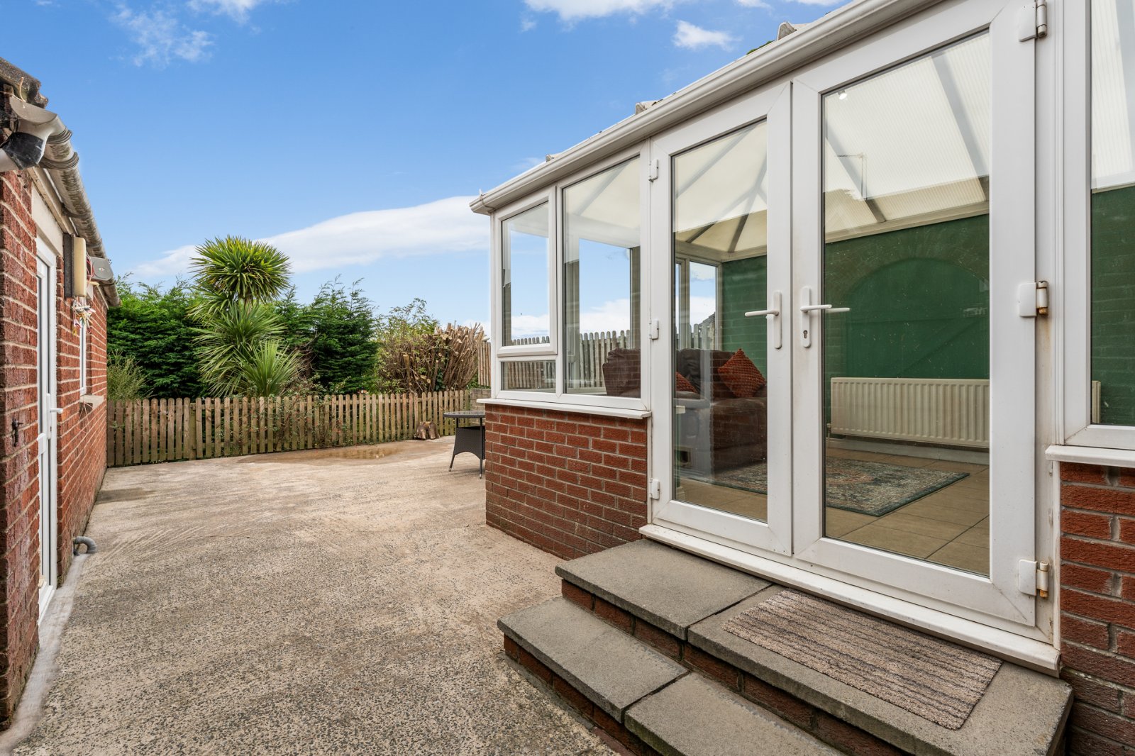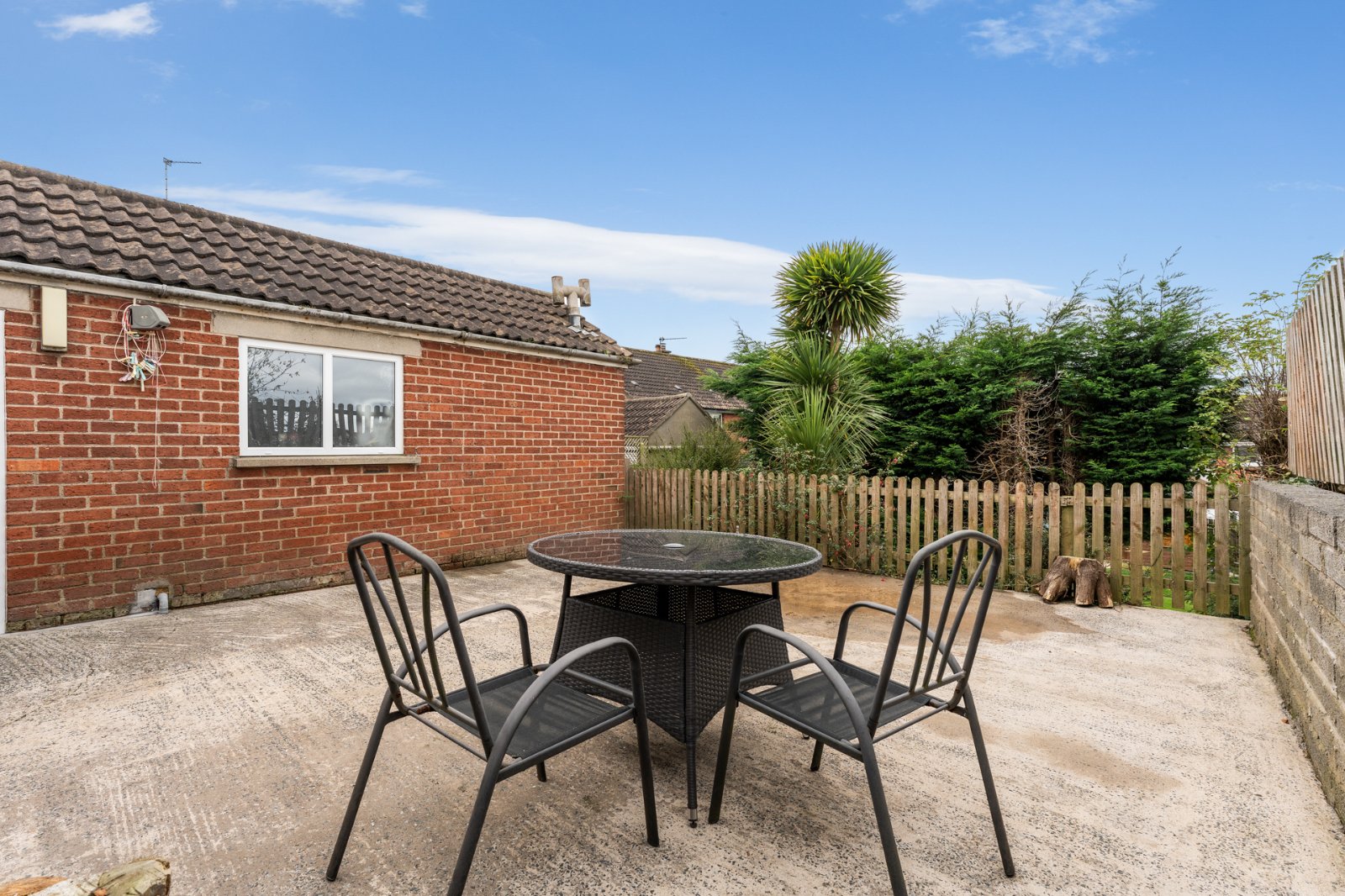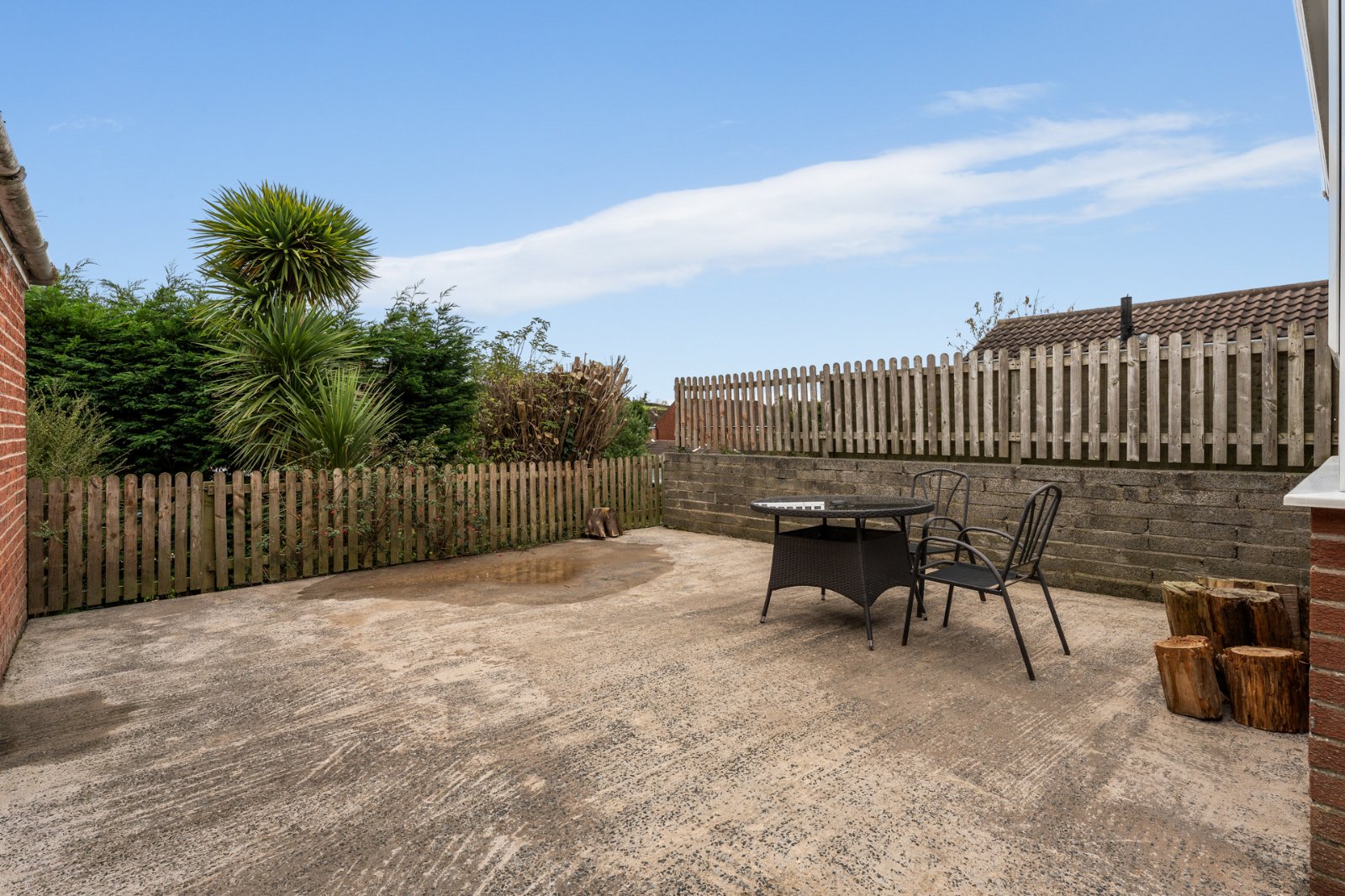 To front in lawns, garden wall. Enclosed garden to rear laid out in concrete patio, steps down to gravel area, fencing, outside tap, outside light, outside water tap.