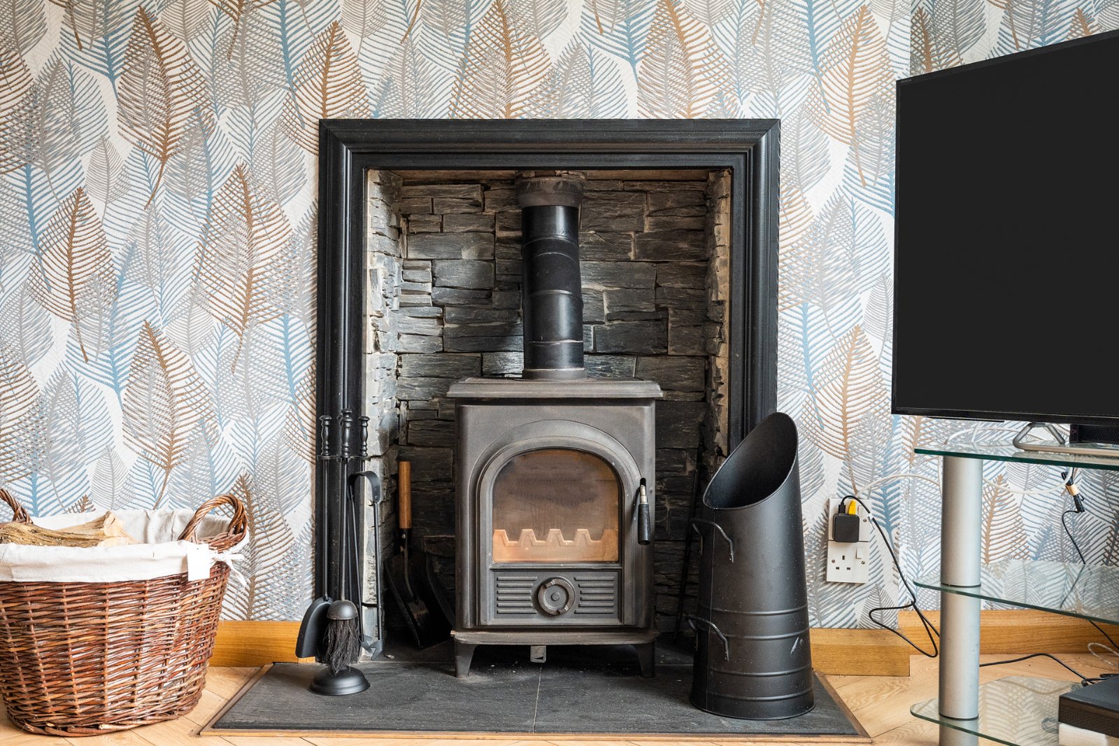 Attractive fireplace, multi fuel stove, tiled hearth, polished laminate floor, TV and telephone points.