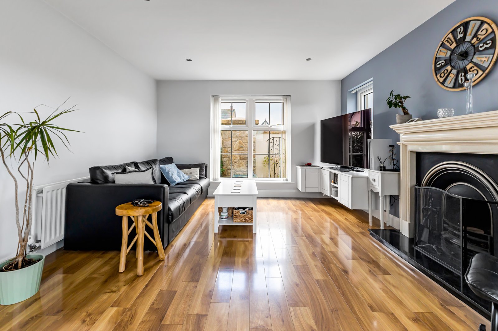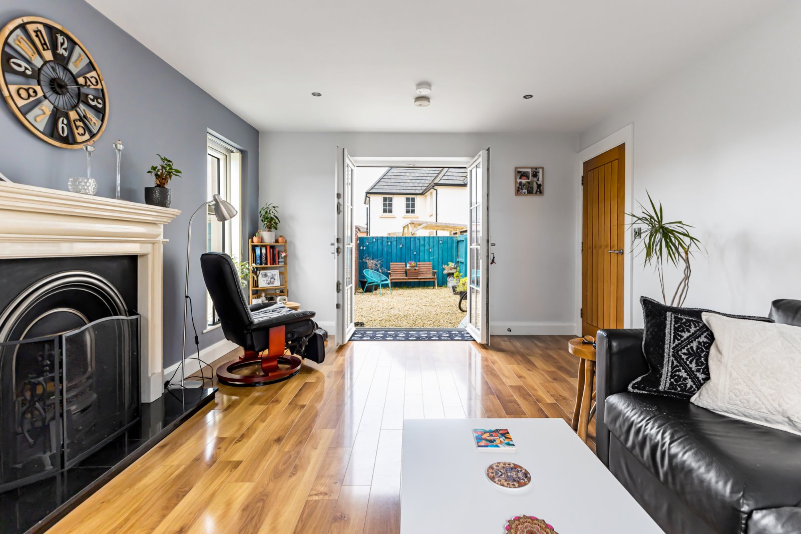 Laminate floor. Feature open fire with marble surround, cast iron inset and granite hearth. Recessed spot lights. uPVC double glazed French doors to rear garden.