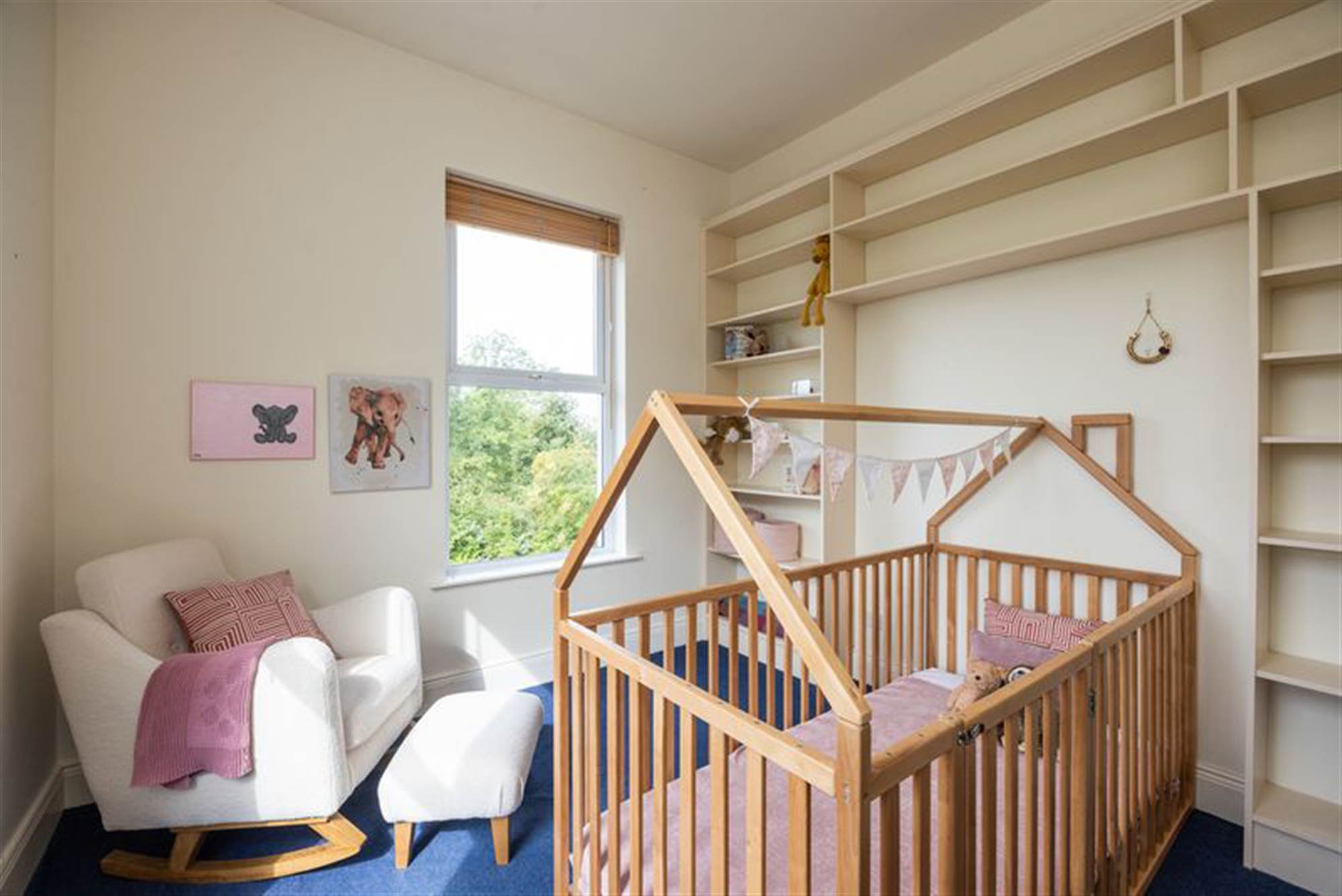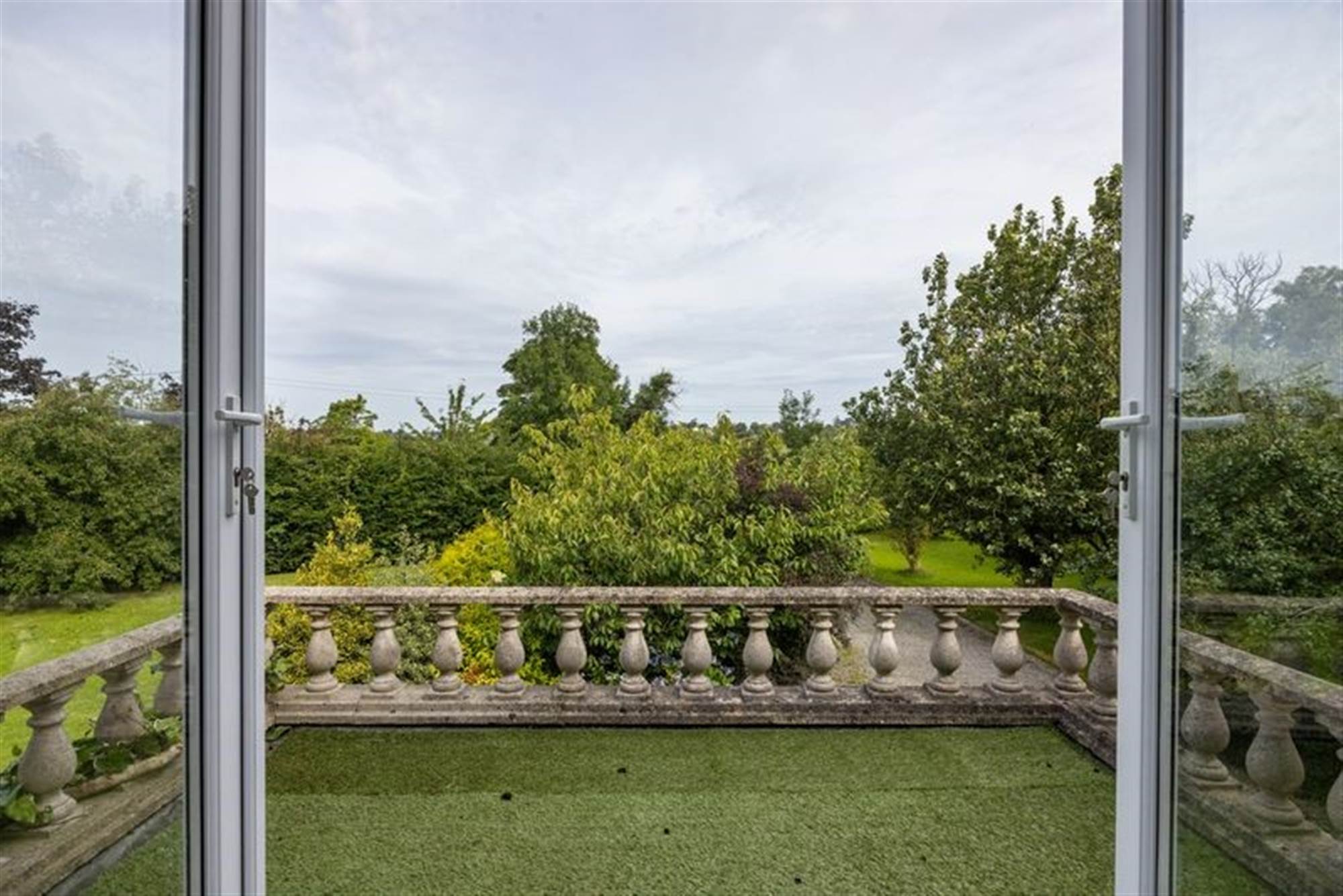Expansive upper landing with built-in double storage and hot press with shelving. French uPVC double glazed doors open onto a charming balcony.