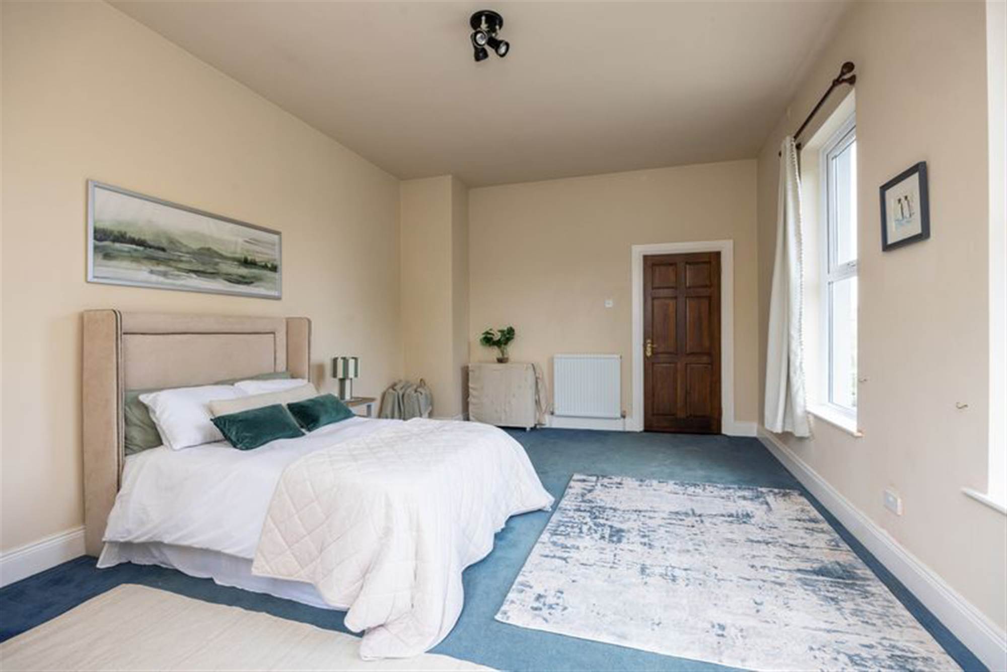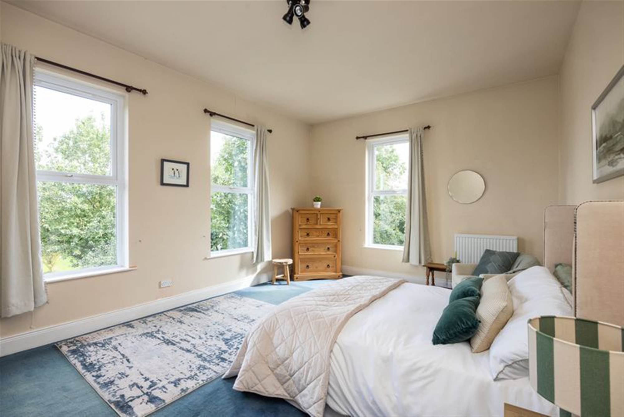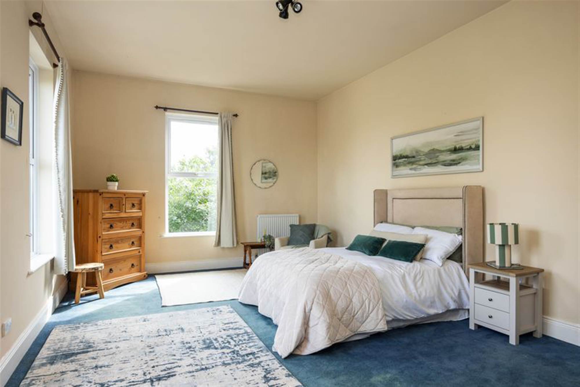 Large double aspect bedroom also plumbed for hot and cold water with twin single panel radiators.