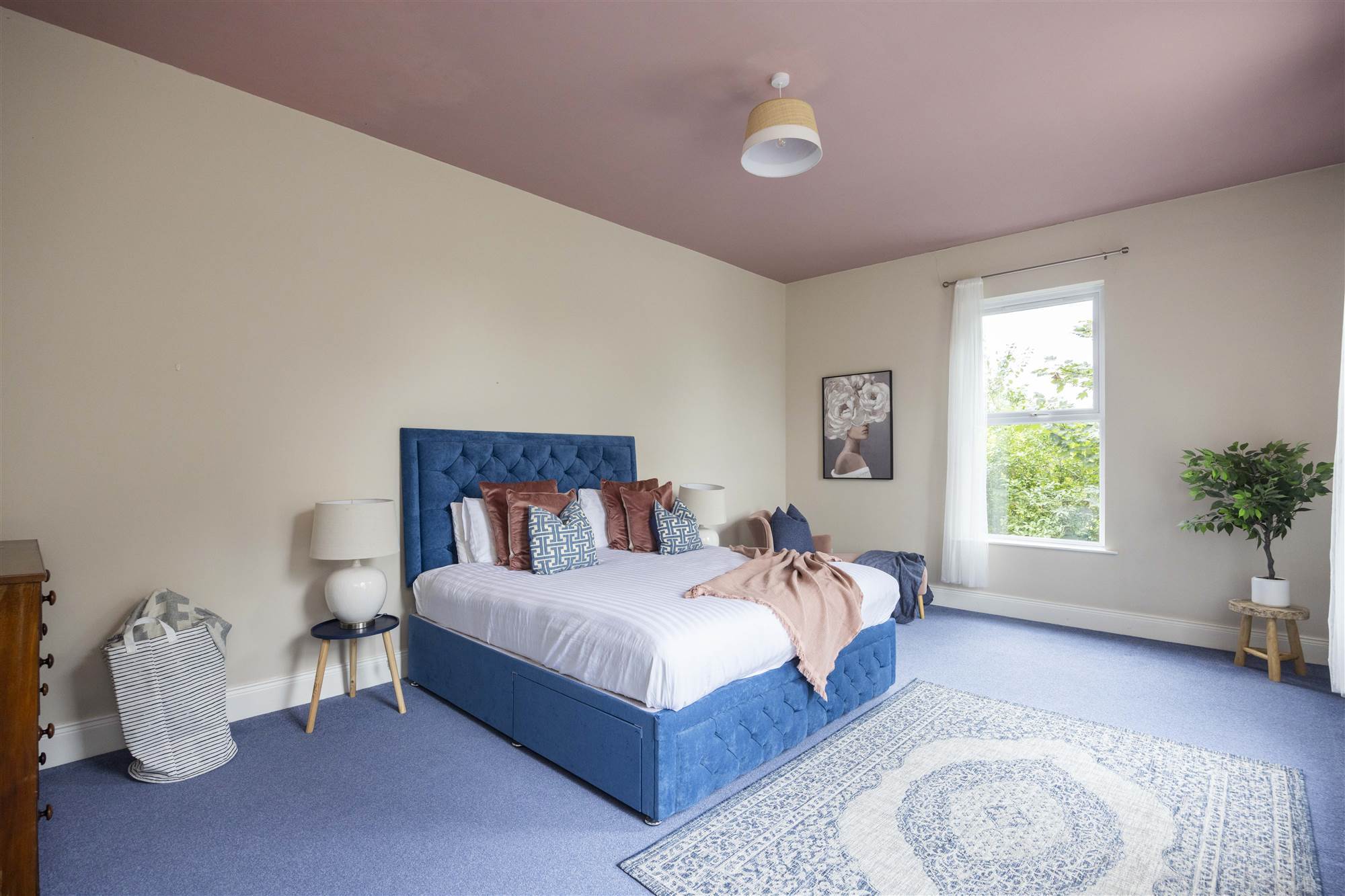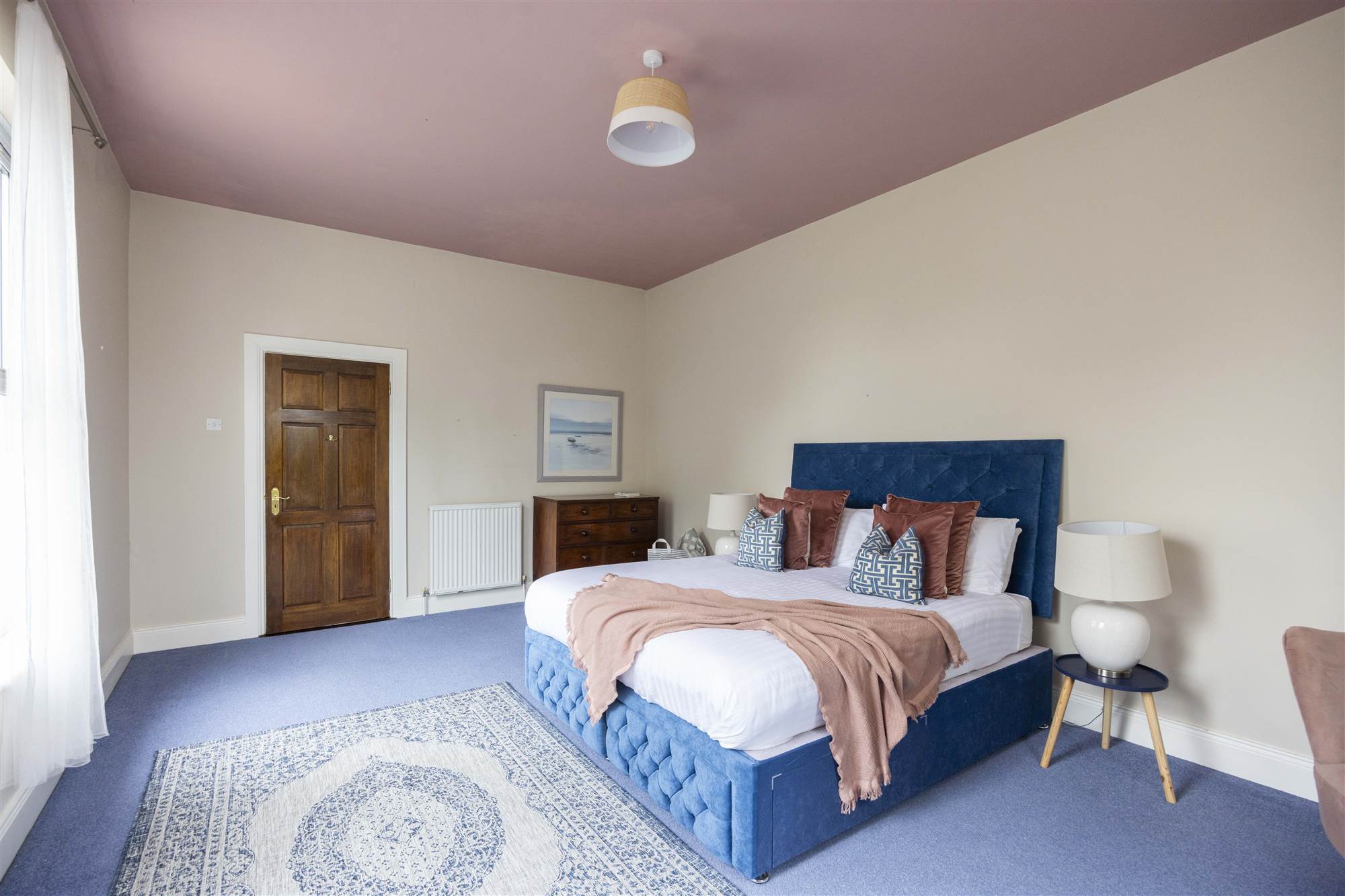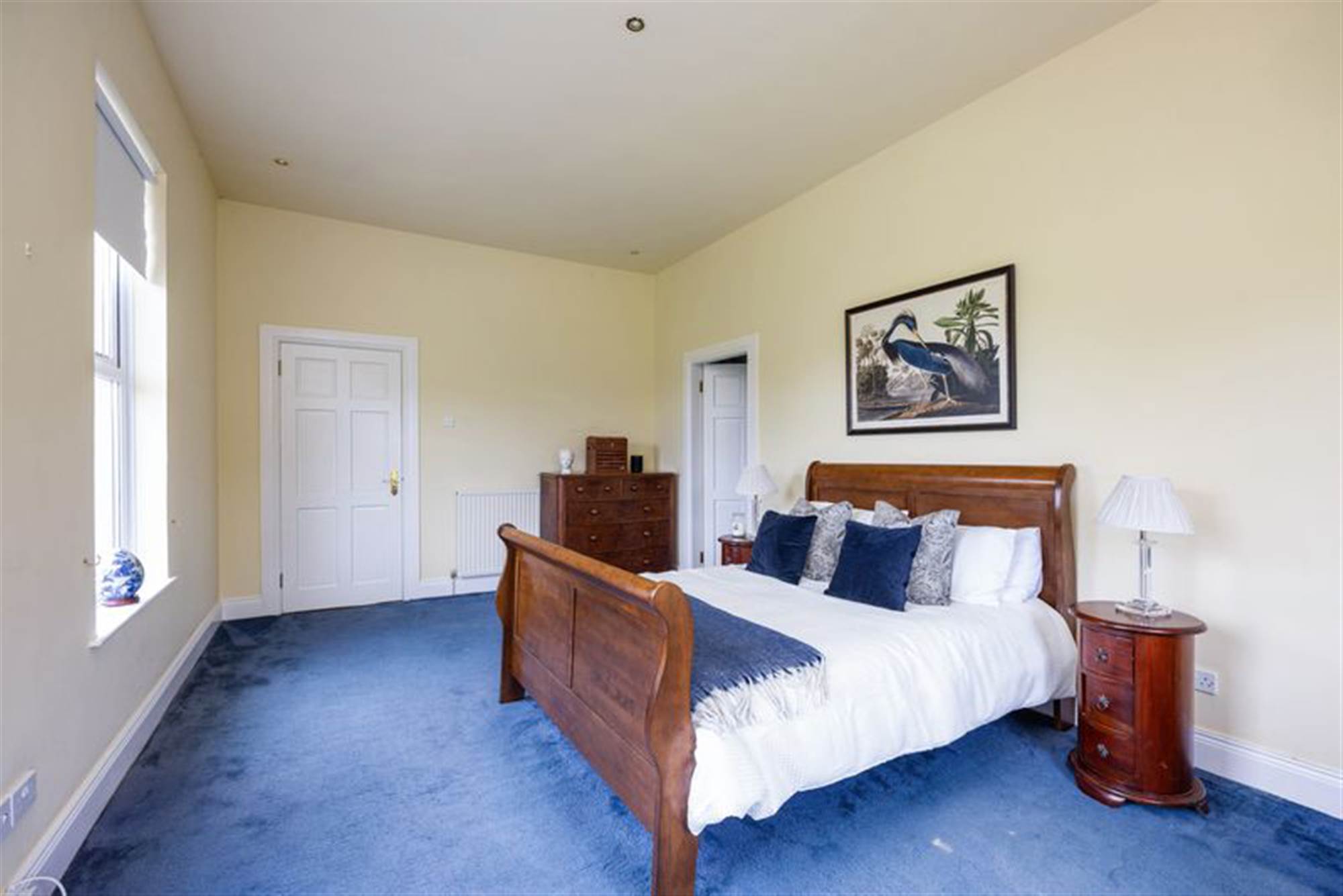 Large double aspect bedroom also plumbed for hot and cold water with twin single panel radiators.