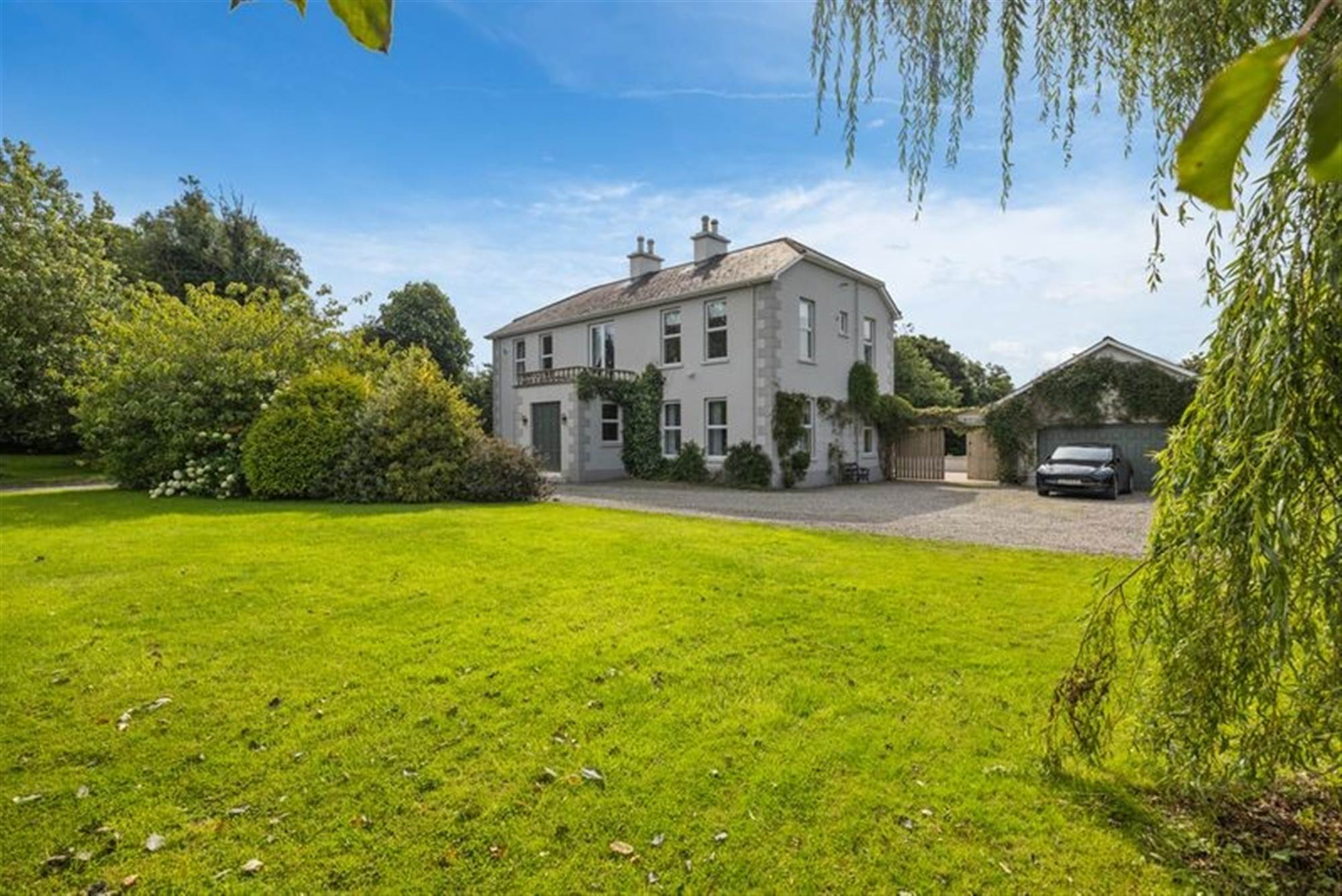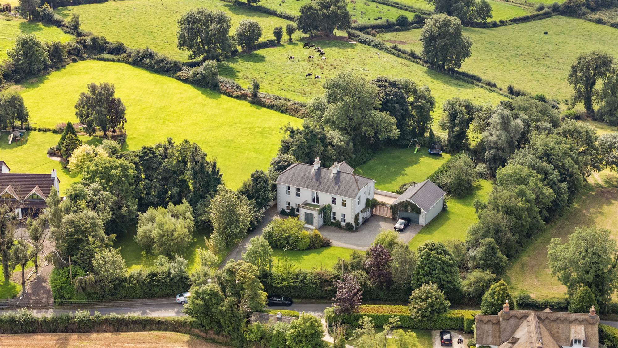 We are delighted to present this stunning four-bedroom detached residence, a truly elegant family home set within approximately one acre of mature, south-facing gardens. Perfectly positioned in a peaceful countryside setting, the property enjoys a mini orchard, expansive lawns, and a wonderful sense of privacy, all just a short drive from the historic village of Hillsborough with its boutique shops, acclaimed restaurants, and royal parklands. For commuters, excellent transport links provide easy access to Belfast and swift connections to Dublin via the nearby A1 dual carriageway.