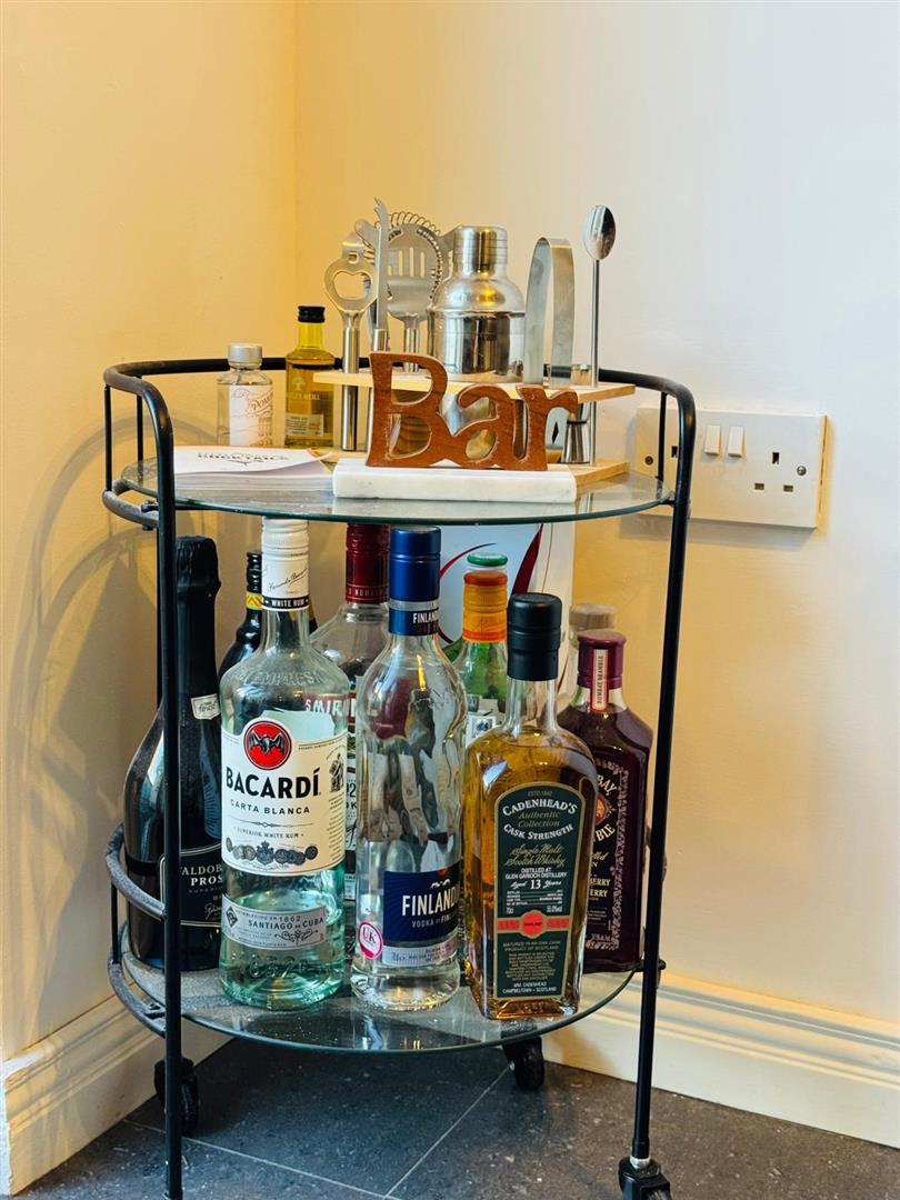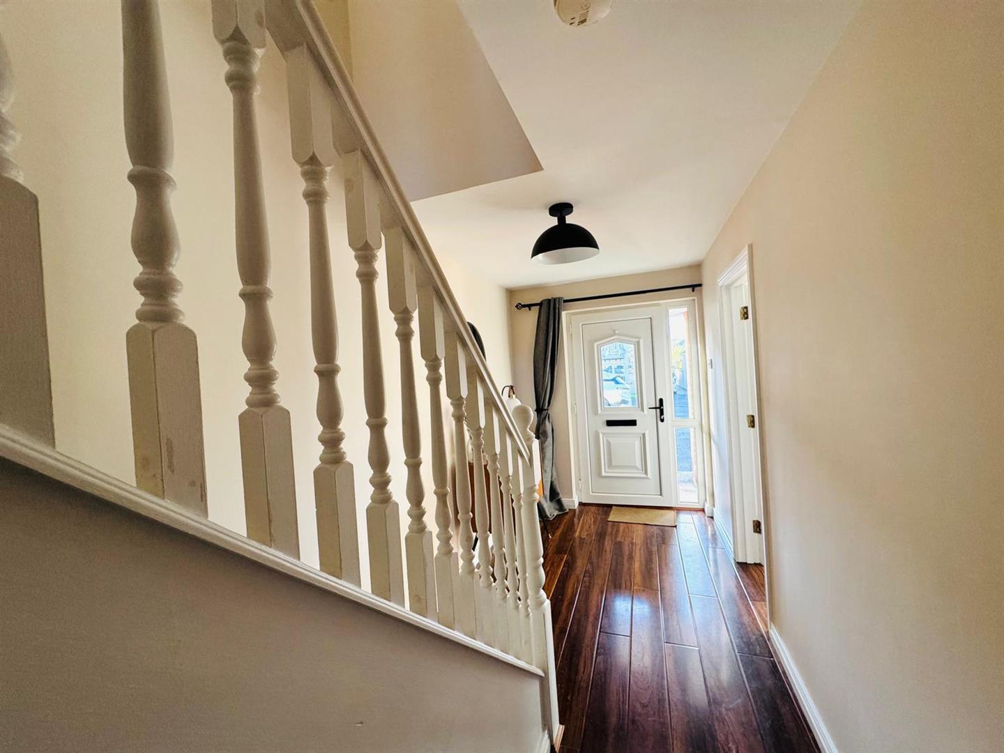 Having attractive fireplace with cast iron inset, laminated wooden floor.