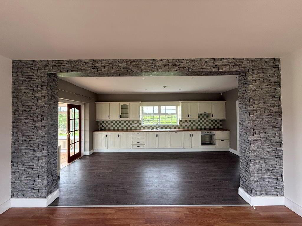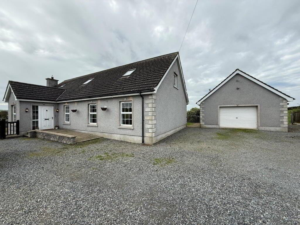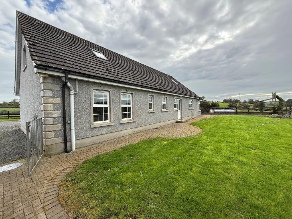 Set in a peaceful countryside setting overlooking open fields, 47A Ballymacanallen Road is a beautifully presented six-bedroom chalet bungalow offering space, comfort, and versatility for family living. This impressive home is set on its own fully enclosed grounds, accessed by double entrance gates and a private laneway, providing both privacy and charm.