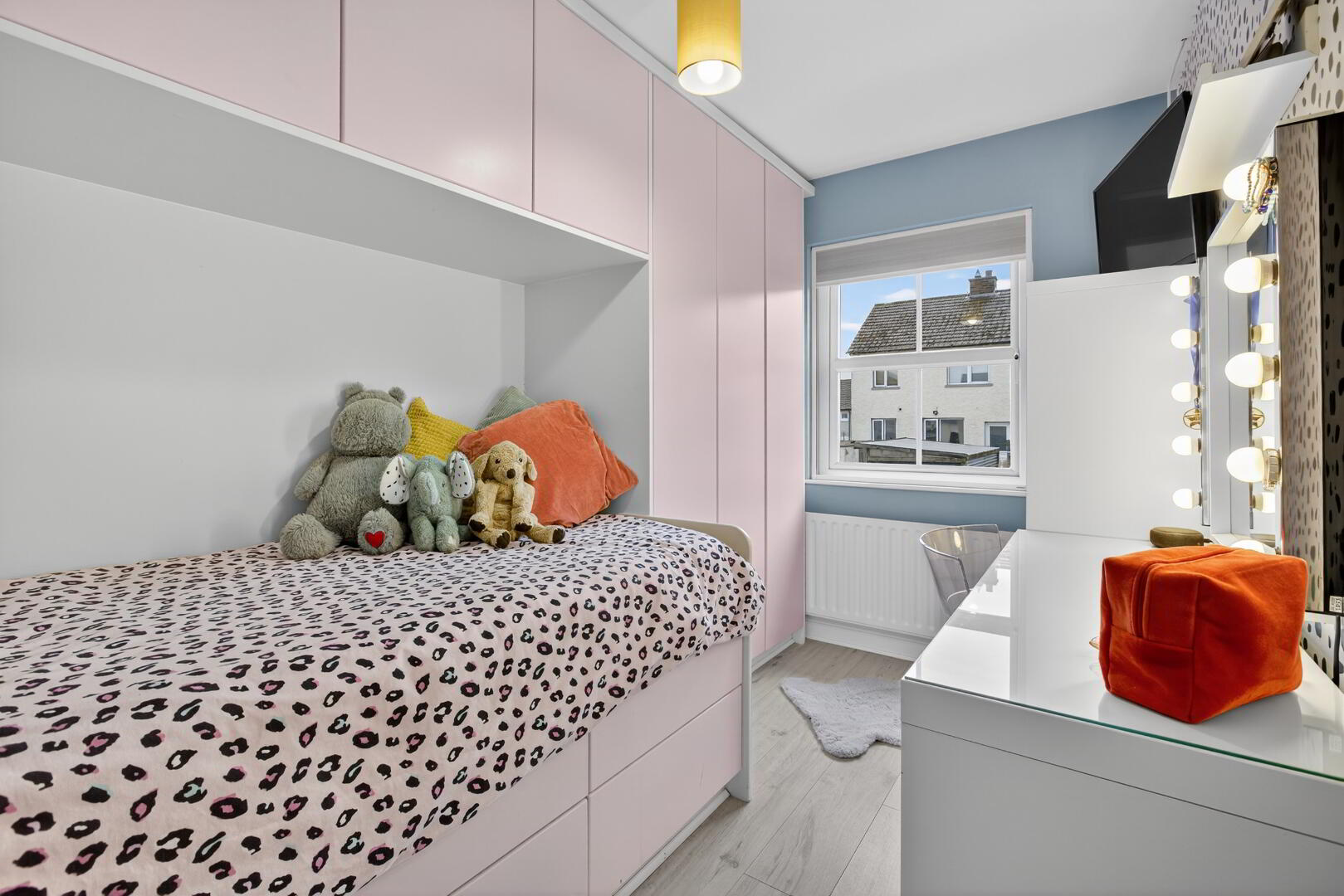 uPVC double glazed window to rear, radiator, laminated wooden flooring, custom made furniture comprising of fitted wardrobe, storage cupboard and single bed with pull out drawers