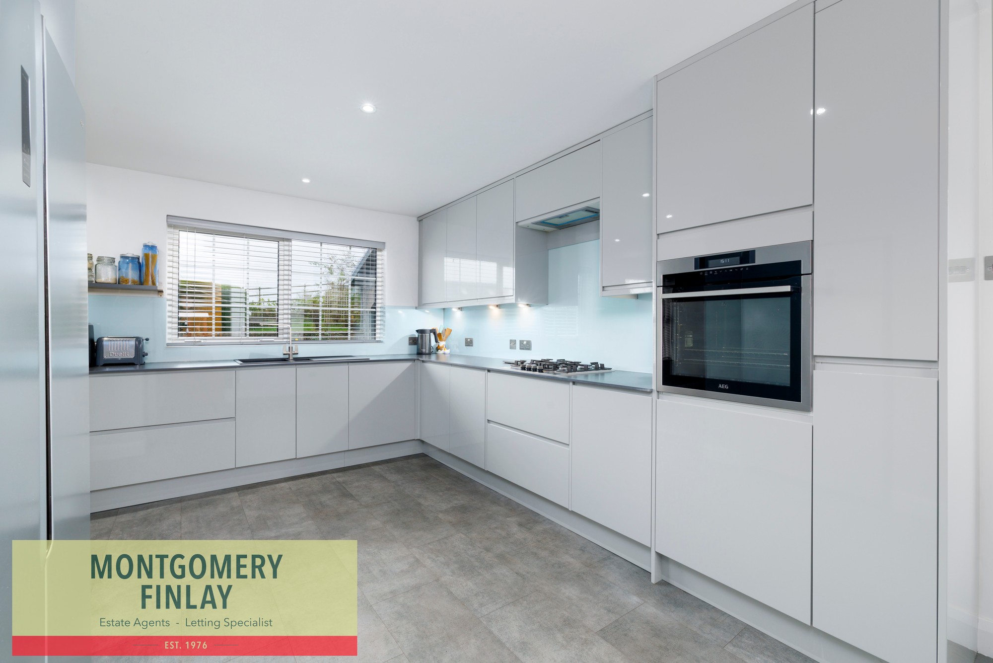 - Bosch 4-point gas hob, AEG eye-level oven, and American-style fridge freezer