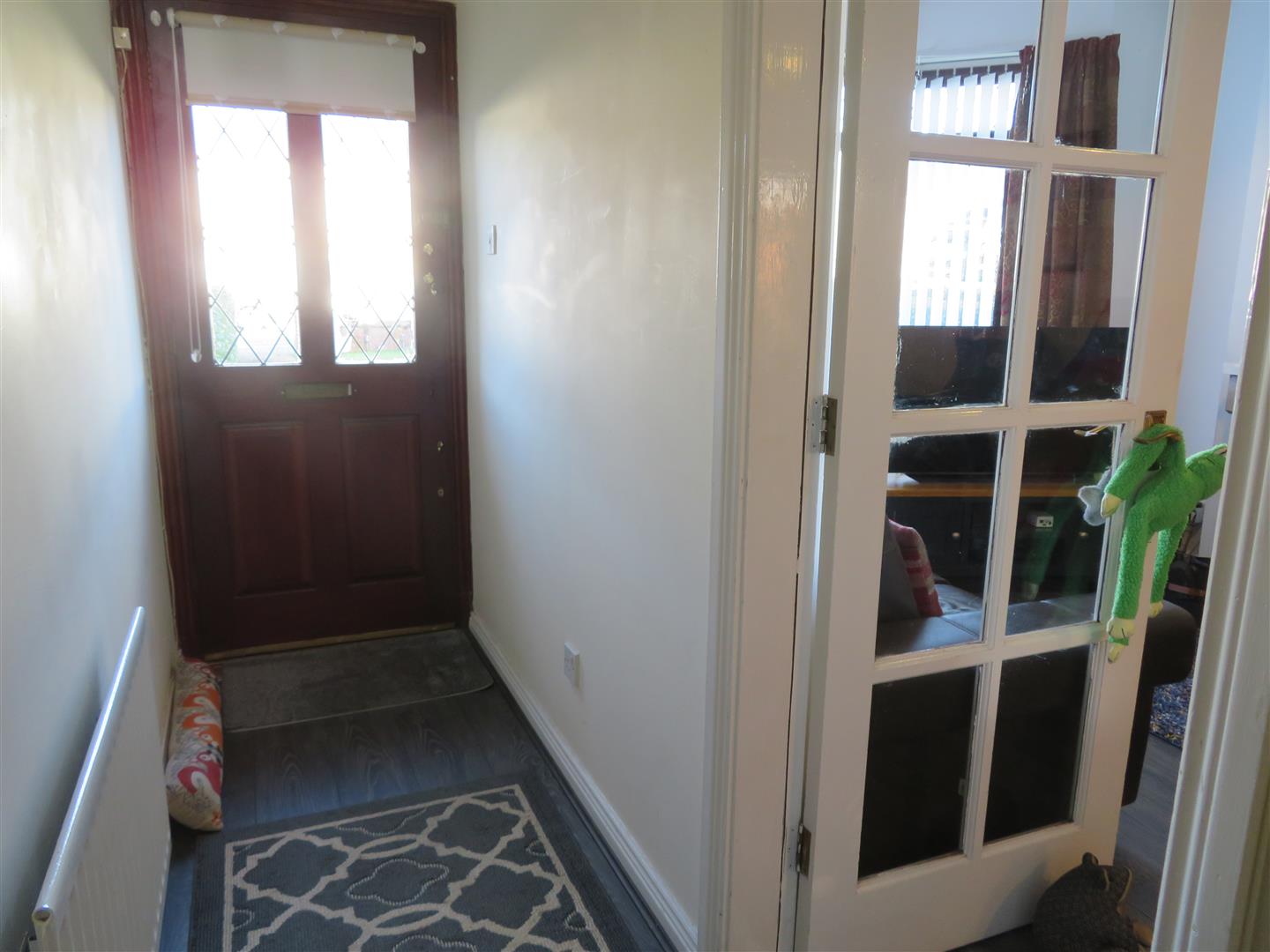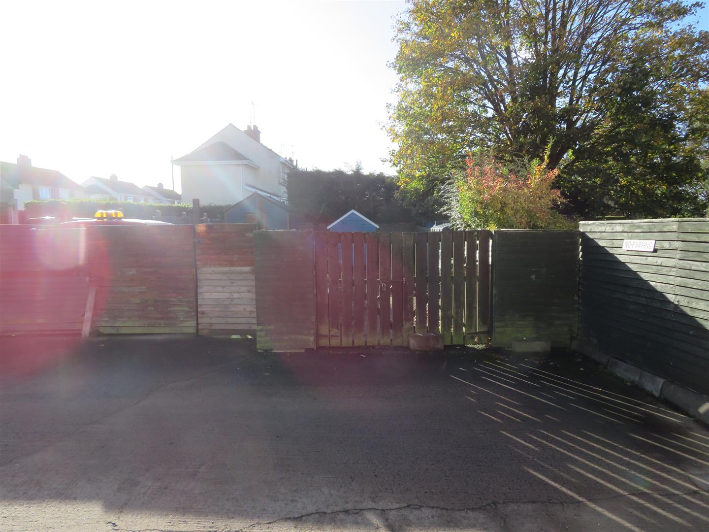 Fully enclosed front garden comprising lawn and well maintained hedges. Covered yard at back door, with further enclosed area beyond shared road.
