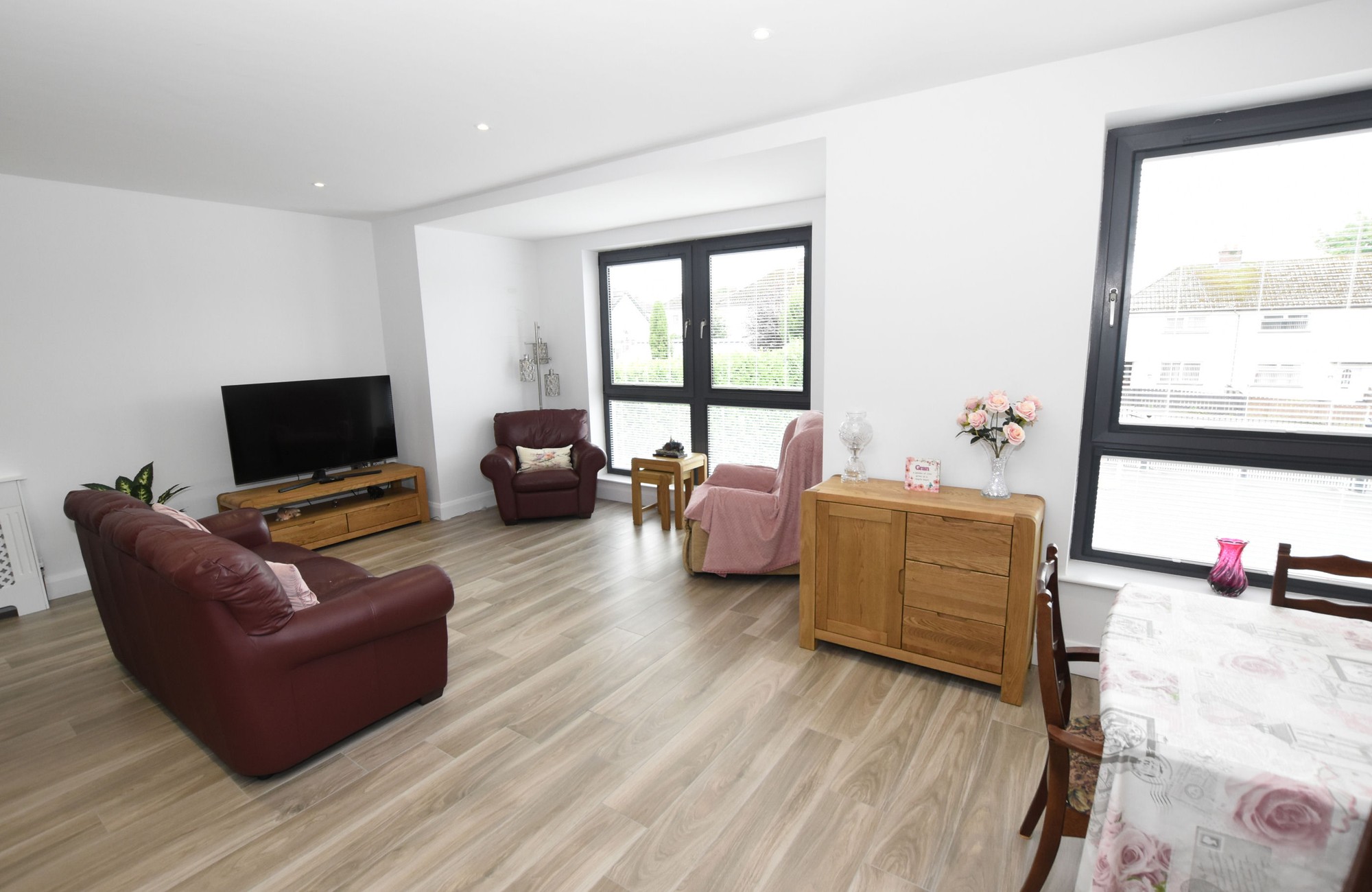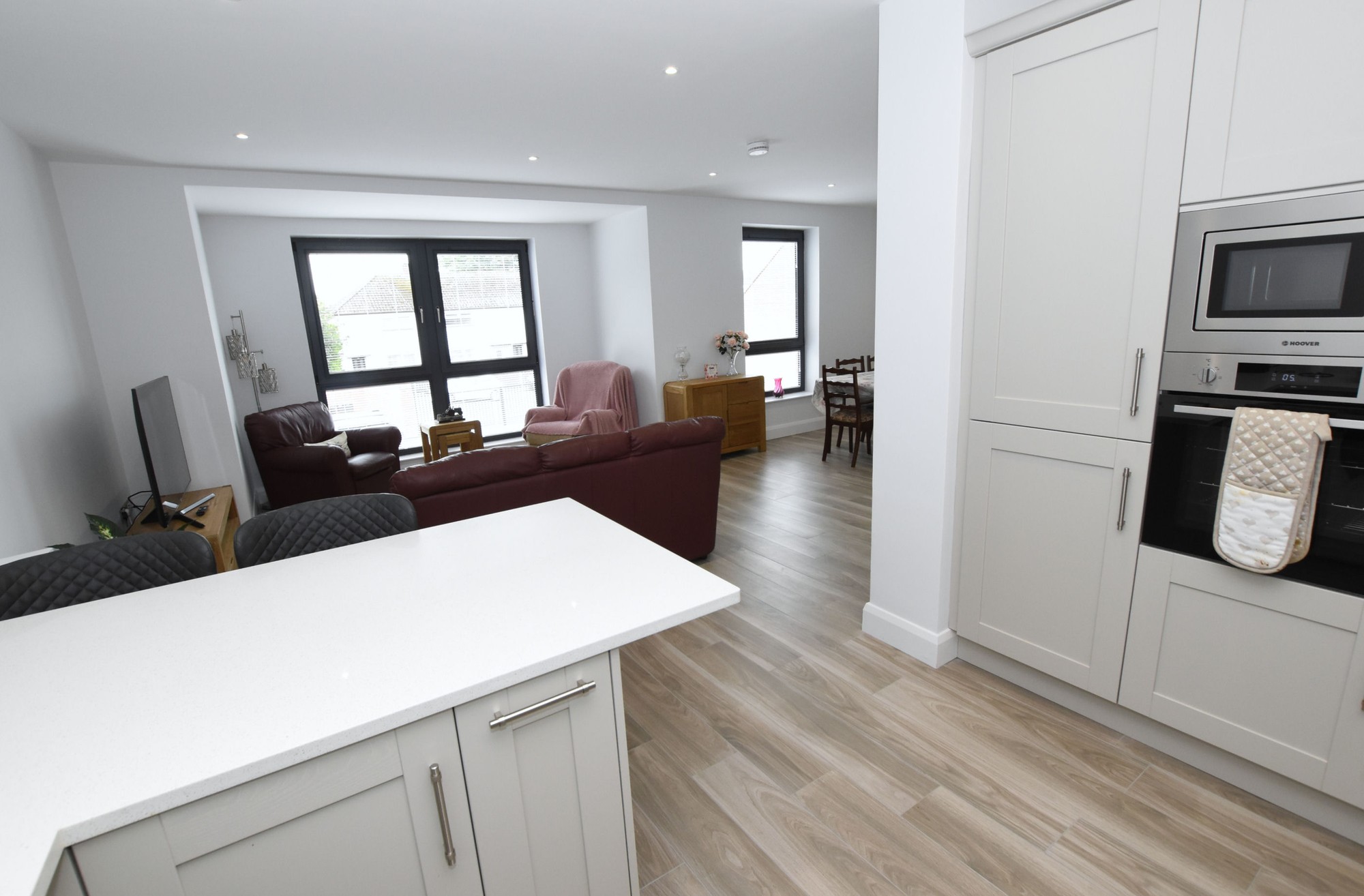 (measurement into the bay). Bright airy home with double glazed windows along the front which overlook the gardens and Meeting Street. Wood effect tiled floor. Low voltage downlights.