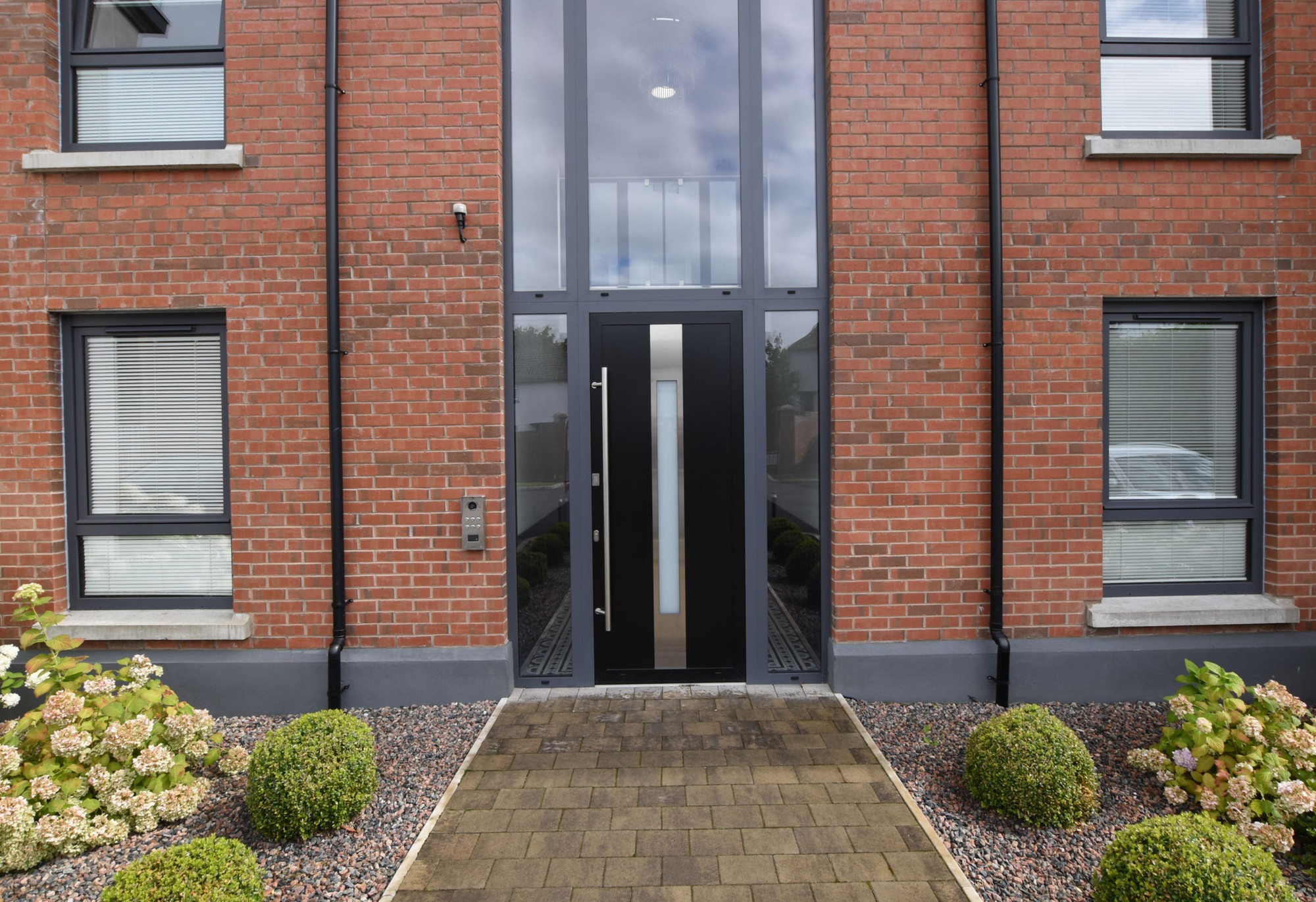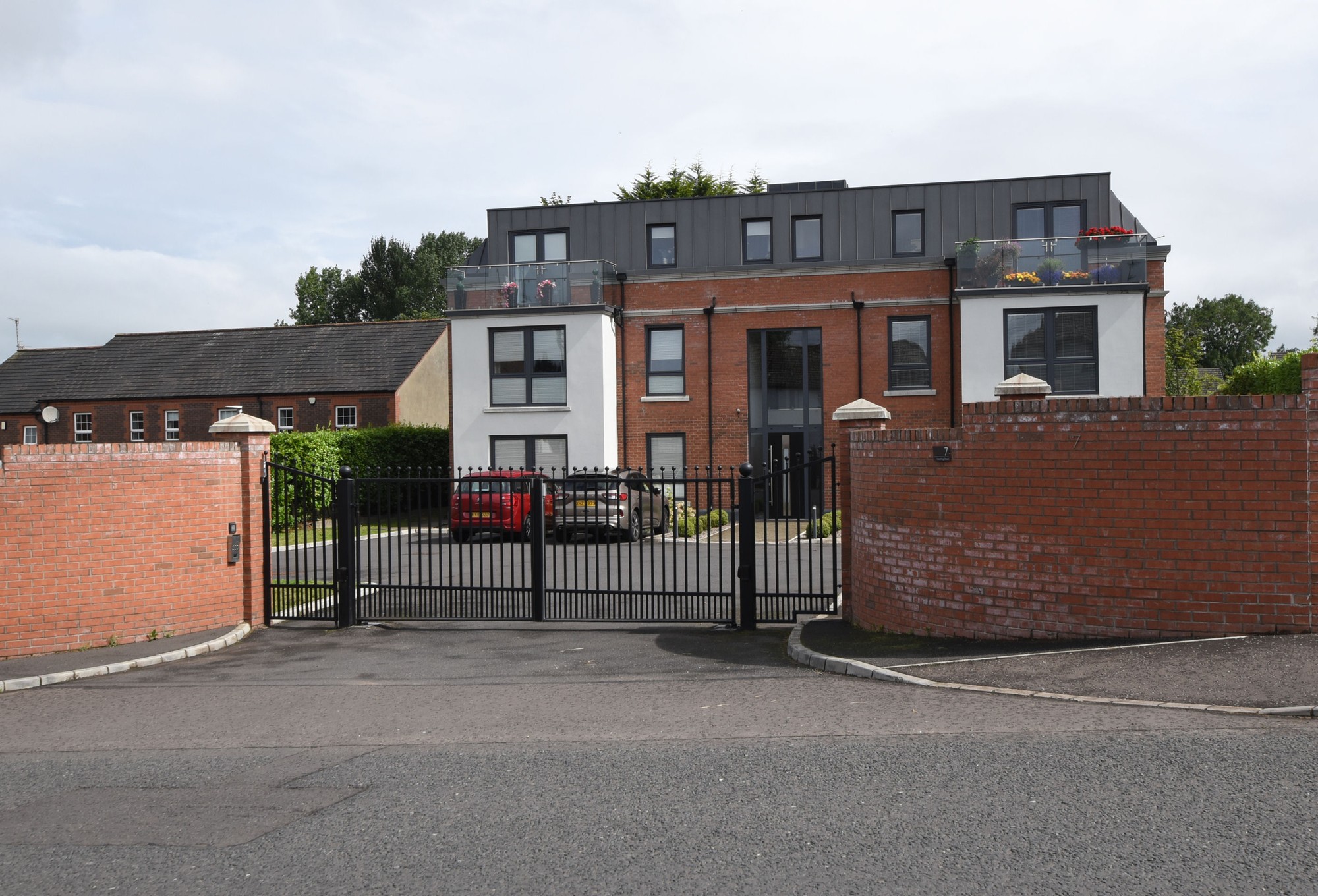 The grounds of this development are accessed from Meeting Street via double electric gates and an electric pedestrian gate. There are red brick wing walls and walls to the front which ensure privacy and security for the residents.