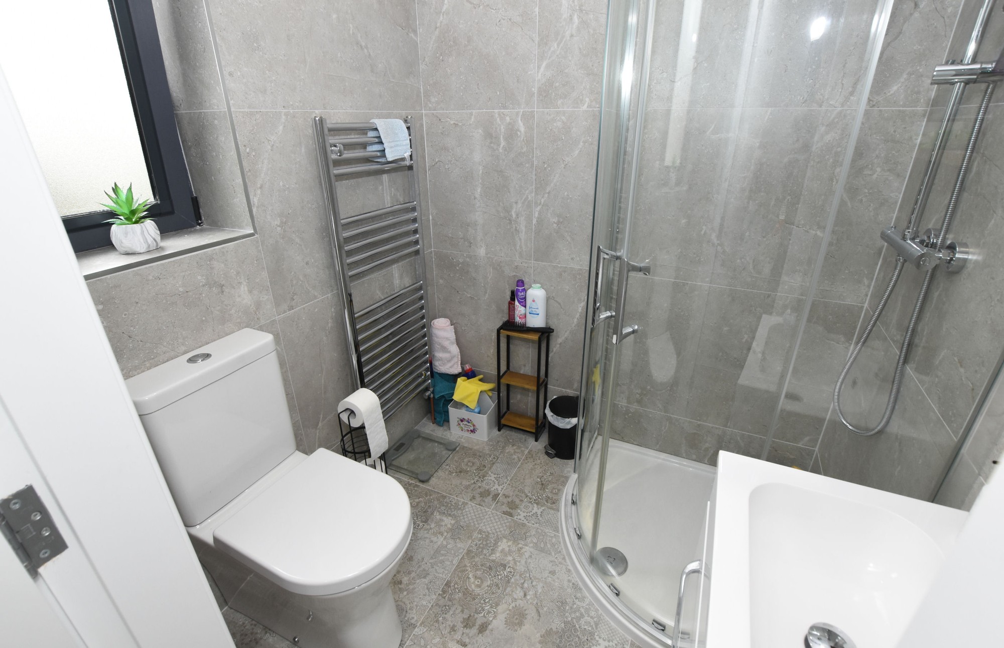 Located off the inner hallway this space has a tiled floor and is plumbed for an automatic washing machine and a space for a tumble dryer. It would also be suitable for fitting a sink unit. The wiring for the internal WIFI / internet in the apartment is also contained here. Wood effect tiled floor