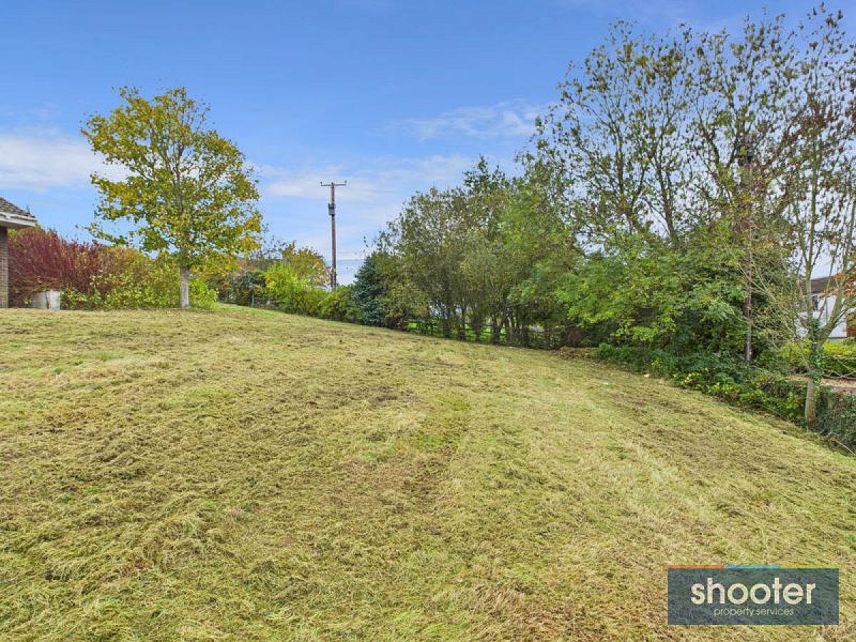 Concrete entrance pillars with red brick finish and cattle grid. Large lawned gardens to front and sides with an array of mature trees, shrubs and flower beds. Raised paved and wooden decking areas. Enclosed paved rear patio area with washing line. Outside tap and lights.
