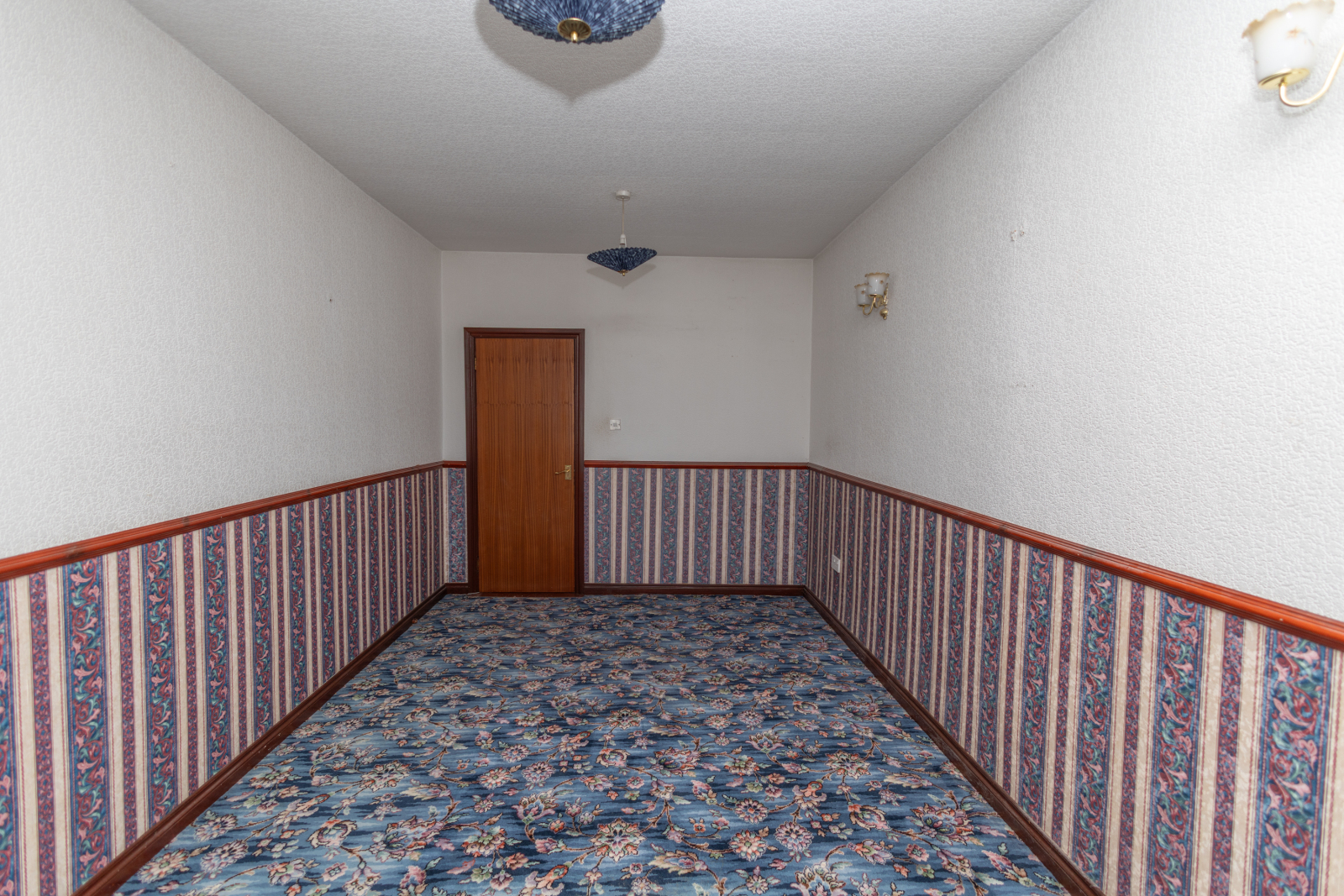 Carpet floor, radiator, decorative fireplace with tiled hearth.