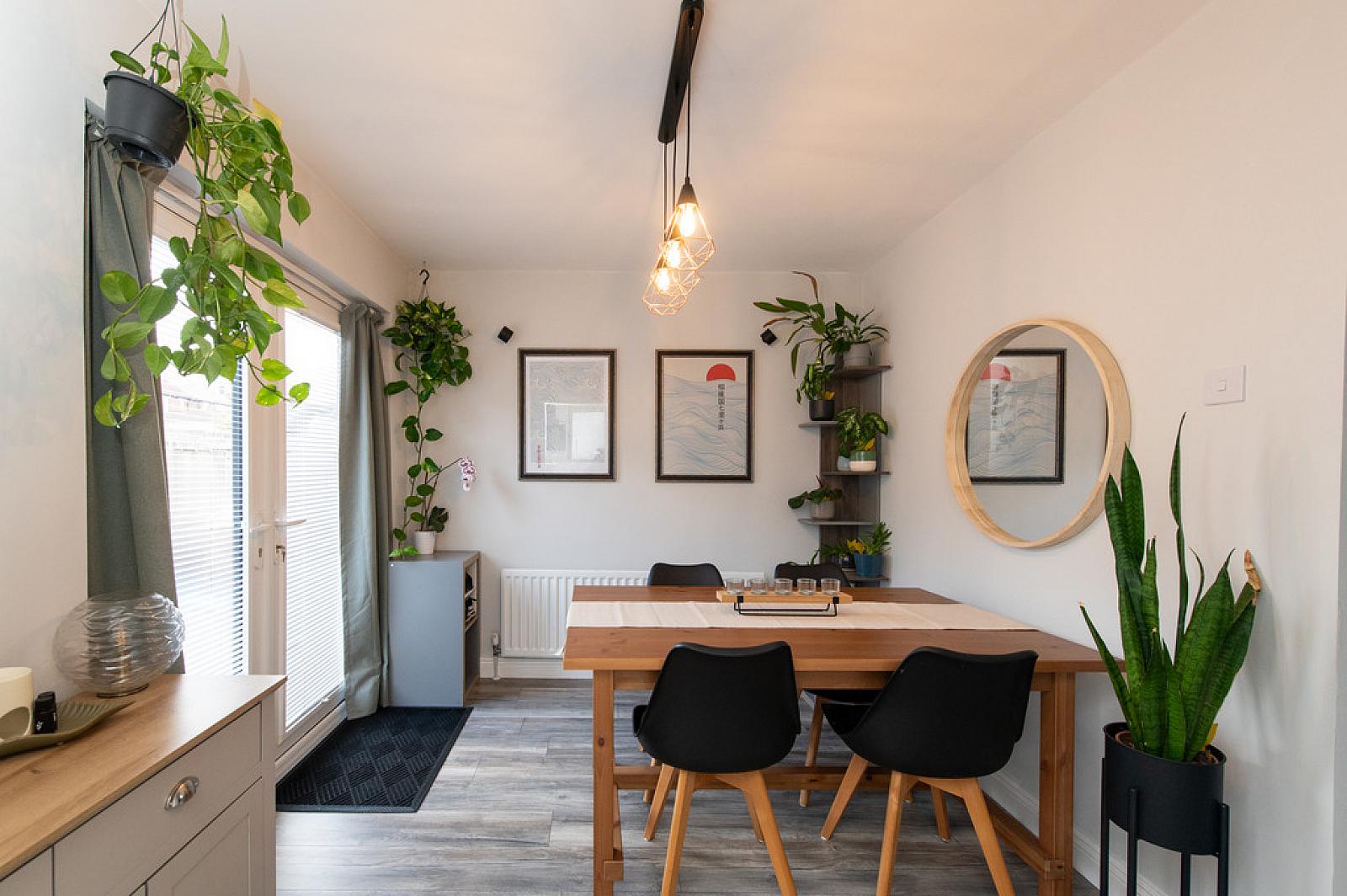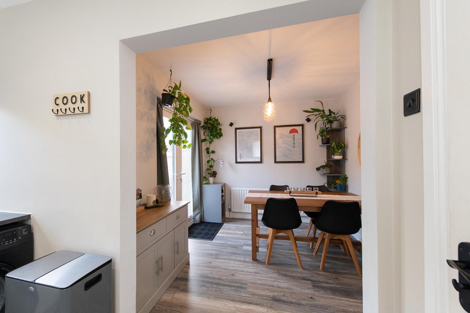 DINING ROOM 9' 11" x 8' 6" (3.02m x 2.59m) French doors to Patio. Laminate wood flooring.