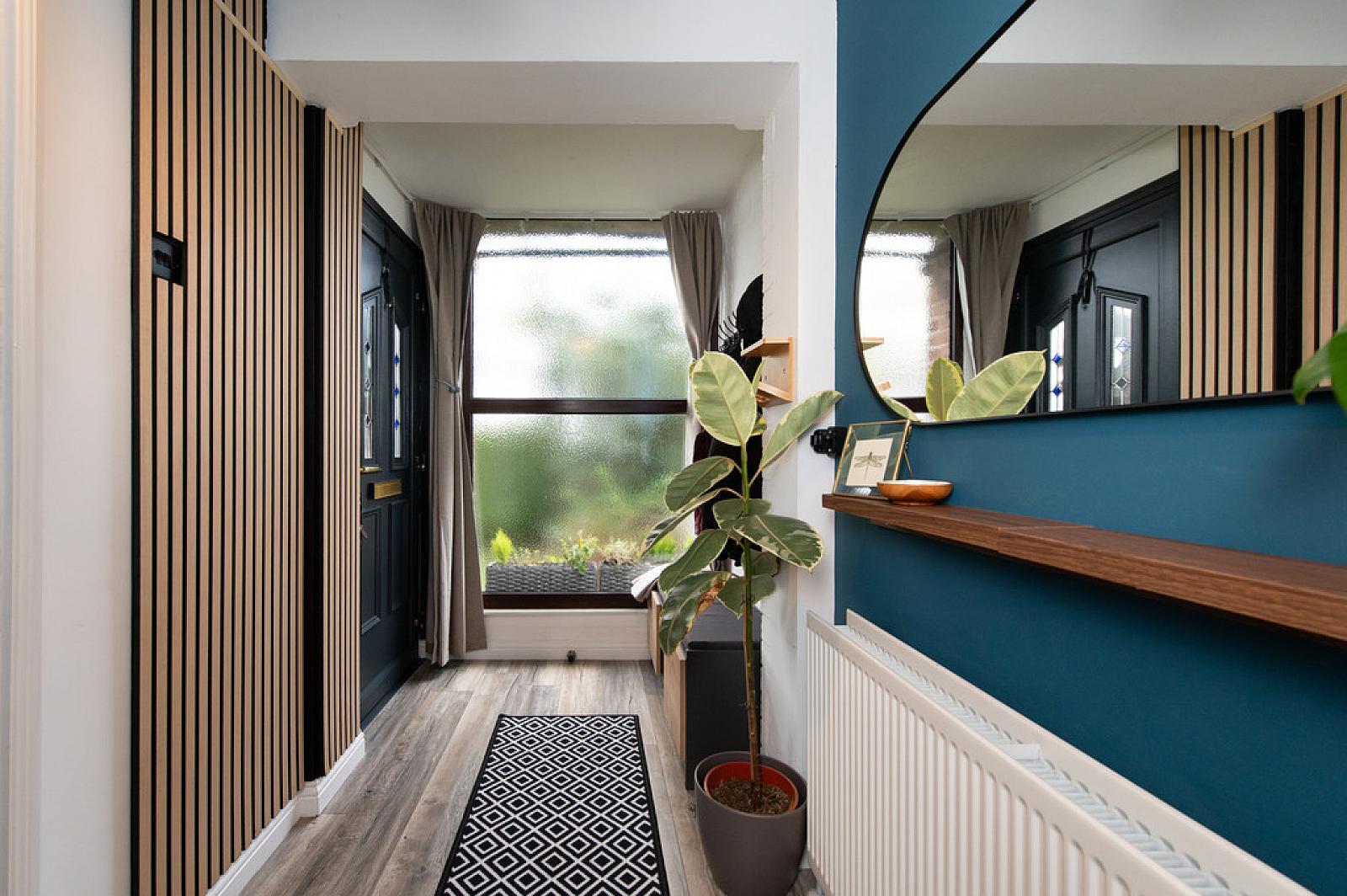 RECEPTION HALL/PORCH Laminate wood flooring. Attractive Panelling.