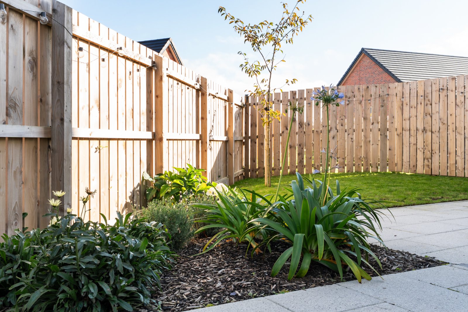 Gardens to front in ornamental lawn, modern paved paths, well stocked flowerbeds covered with bark chippings. Enclosed side and rear gardens laid out in manicured lawns, large modern paved patio area and paths, well stocked flowerbed covered in bark chippings, good sized chalet style garden shed, fencing, outside light, outside power point, access to both sides via timber gates.