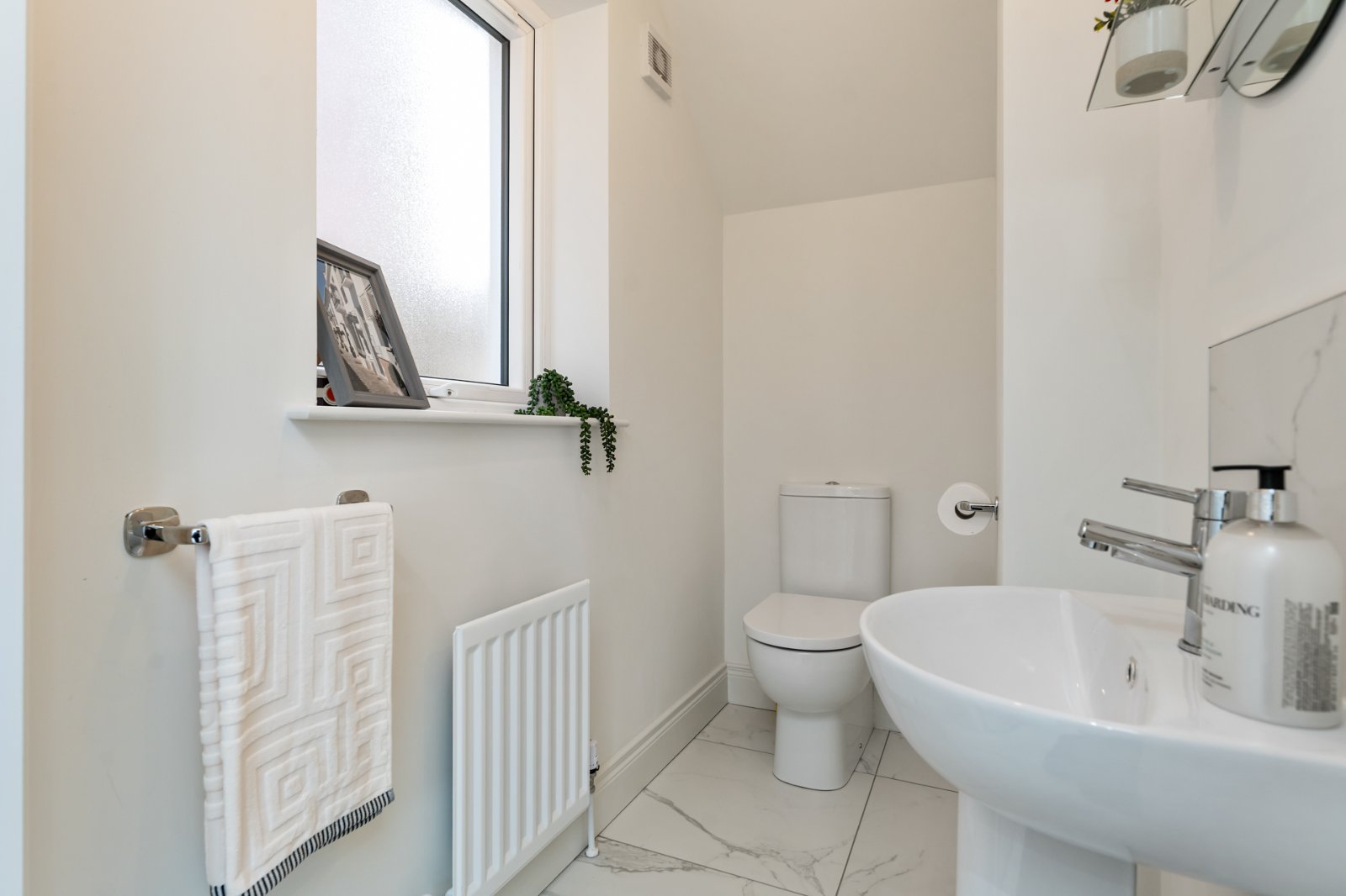 The accommodation briefly comprises of; entrance hall with a ceramic tiled floor, a lounge flooded with natural light, large open plan, , modern downstairs cloakroom and a luxurious, upgraded, kitchen/ dining space to the rear of the property. The modern kitchen provides `Cashmere´ shaker style units with a range of integrated appliances and Quartz tops, again with plenty of natural light. On the first floor, there are three bedrooms, bedroom one with luxury ensuite and built in robe. Bedrooms two and three are neatly serviced by a luxury bathroom comprising modern white suite.