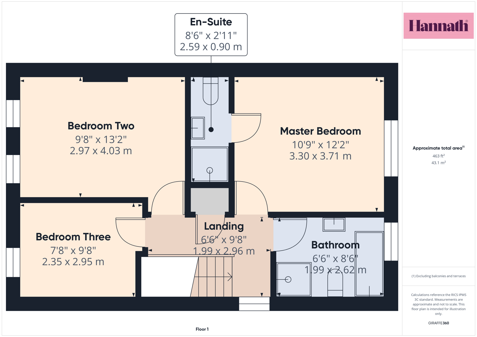 Landing 6'6" X 9'9" (1.99m X 2.96m)