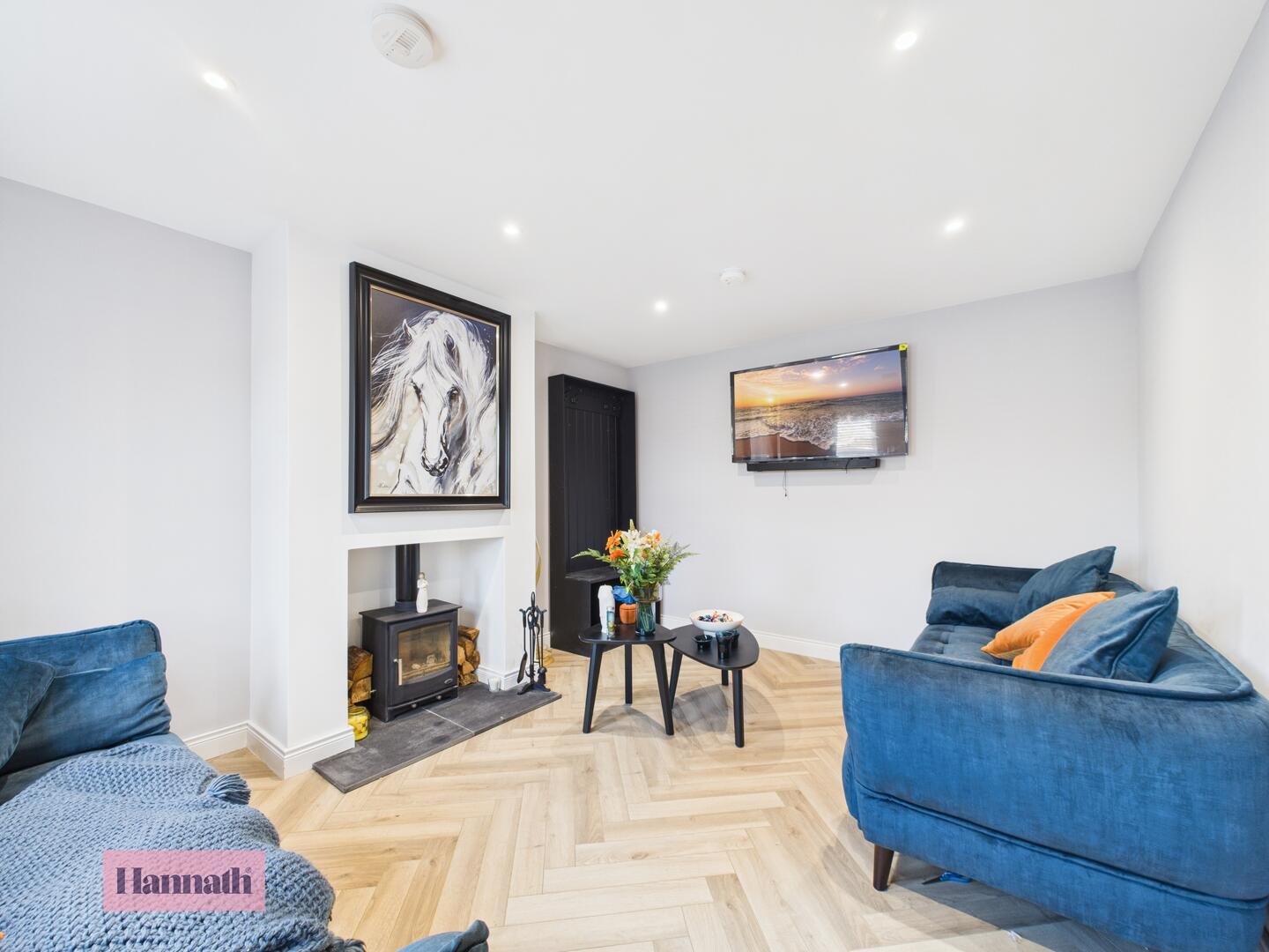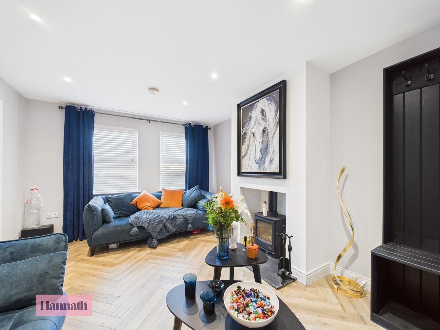 Large Lounge Featuring a Wood Burning Stove