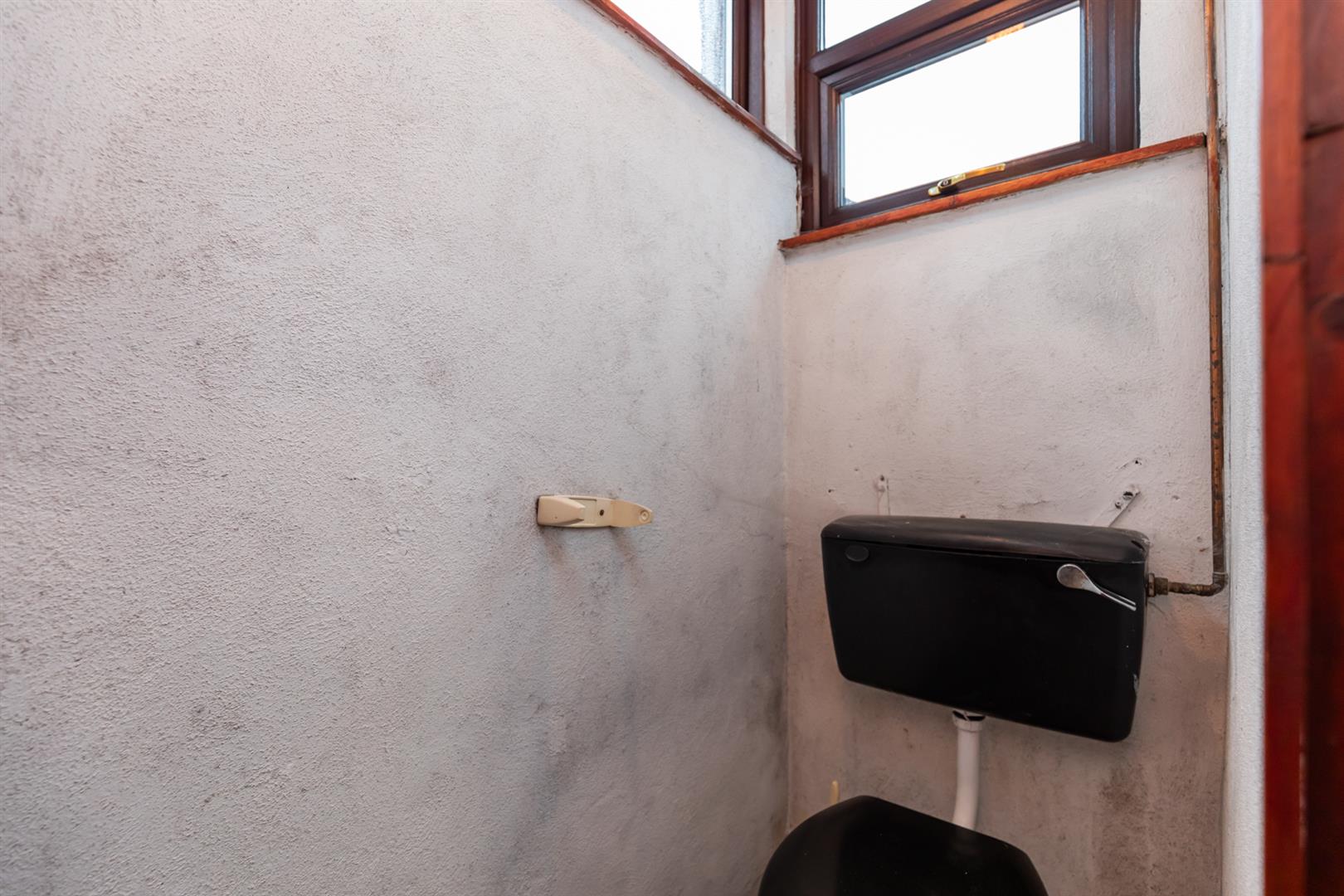 Low flush w.c, Upvc double glazed back door to garden.