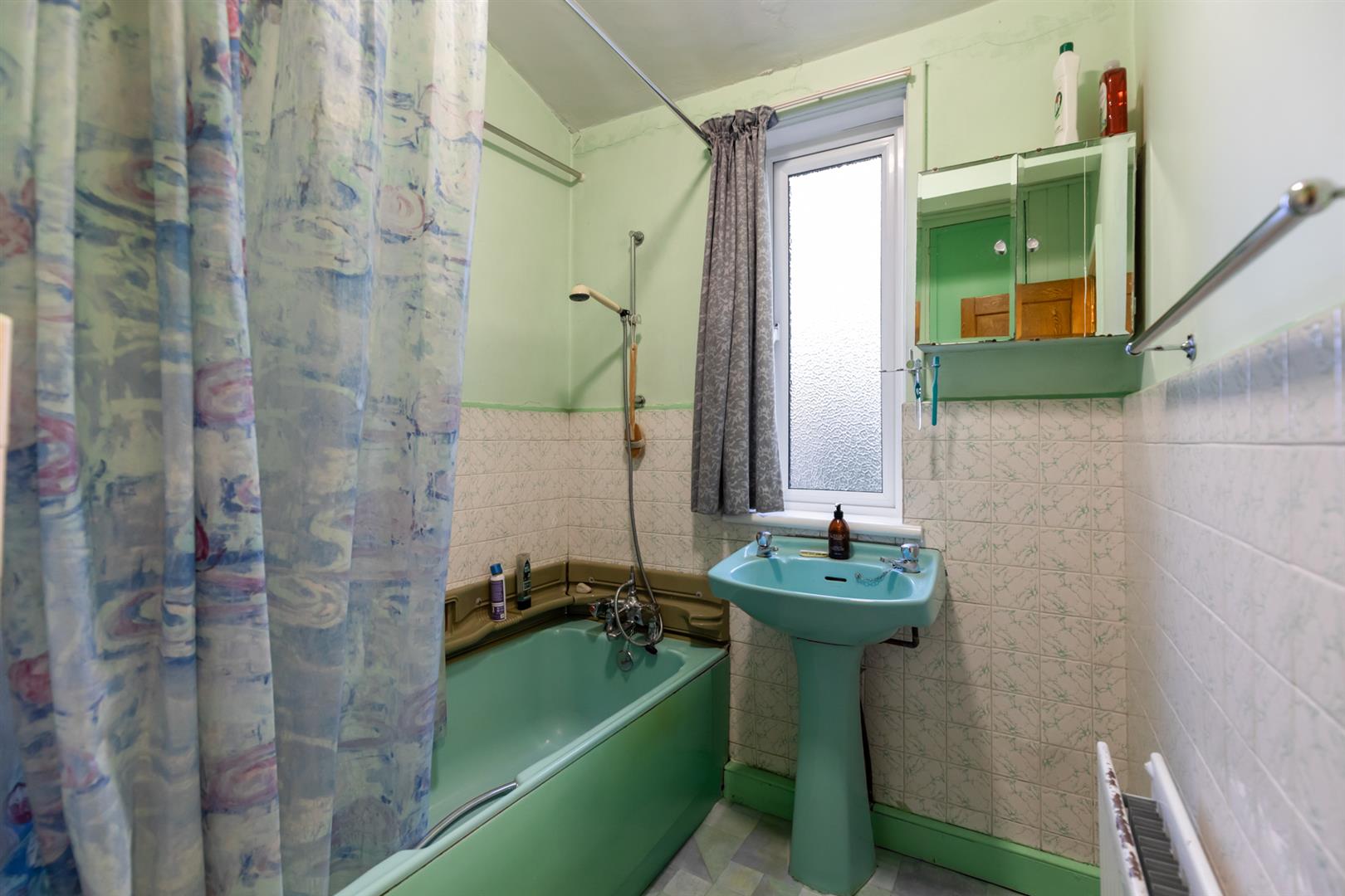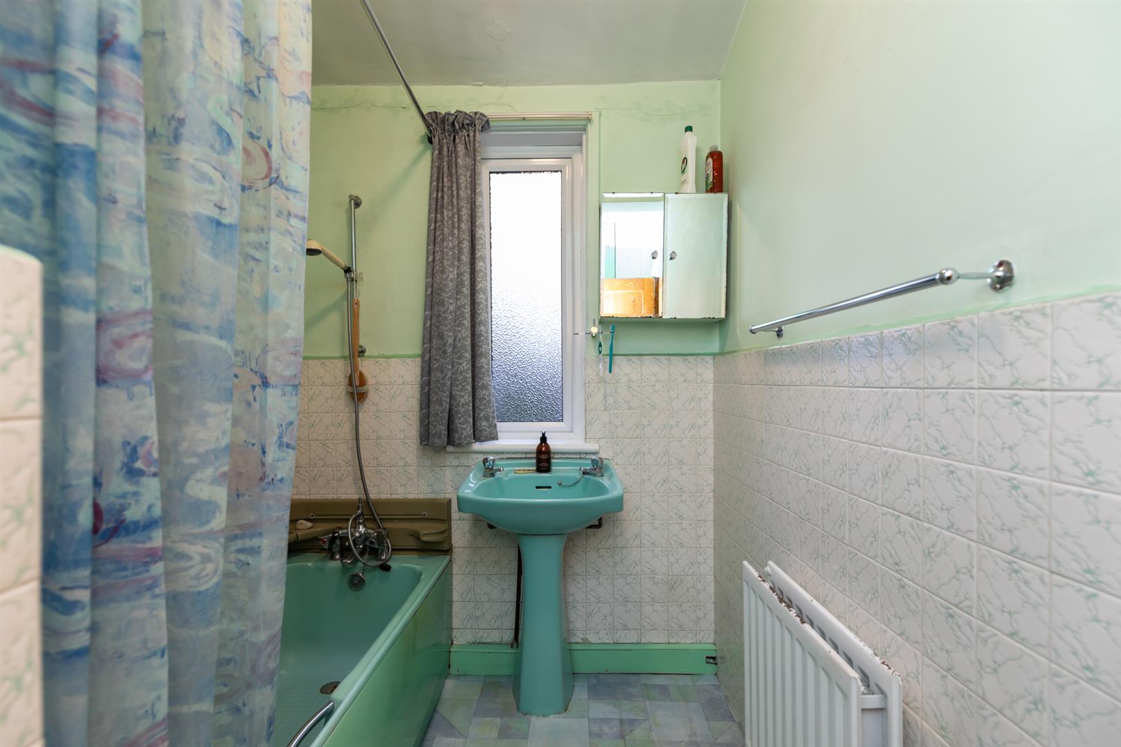 Bath, pedestal wash hand basin.