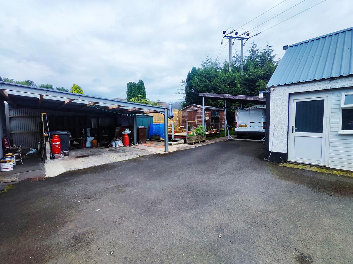 The property is approached by a tarmac driveway with ample parking for multiple vehicles. Mature gardens & lawn to the front that is boarded by an array of various trees and shrubbery. two car ports, two sheds and raised deck area which is all enclosed by gates.