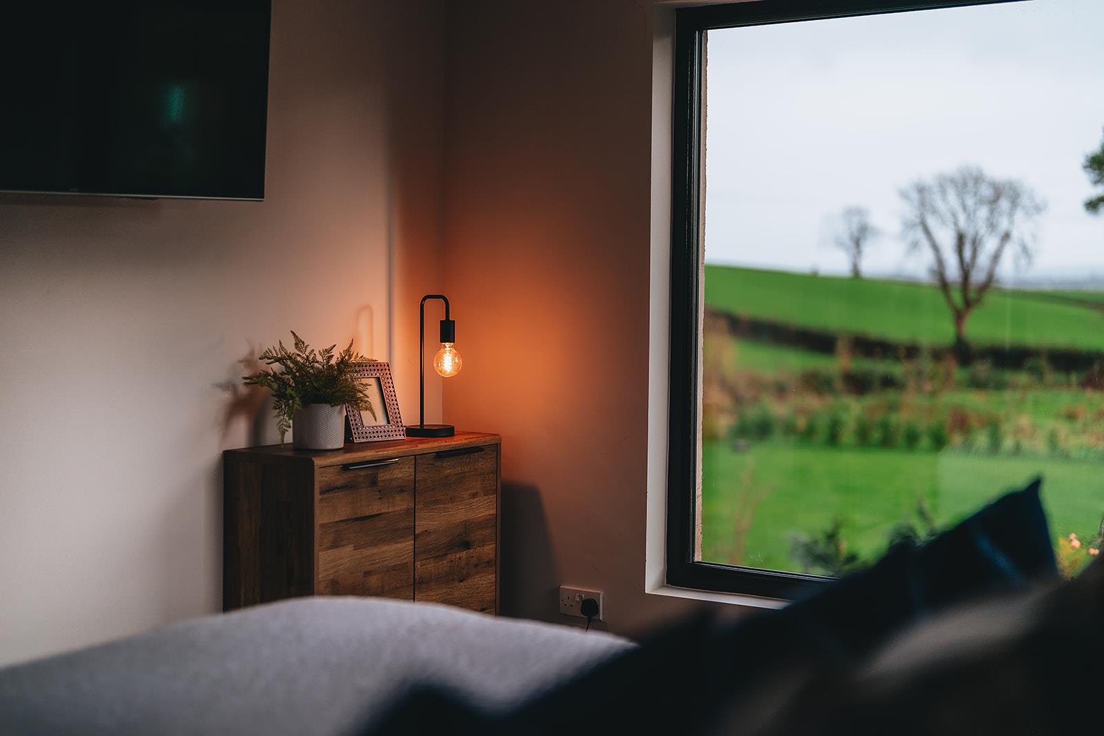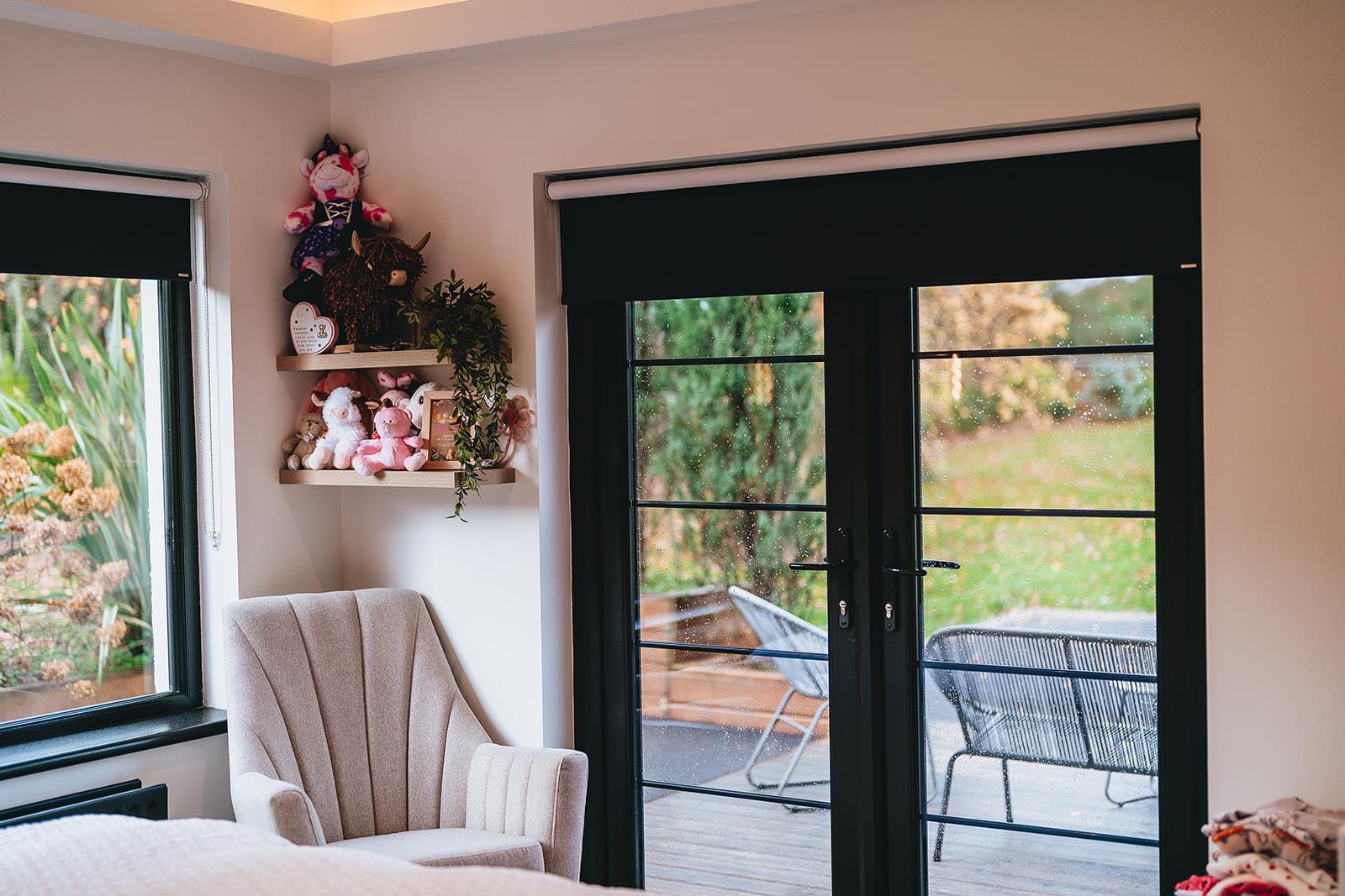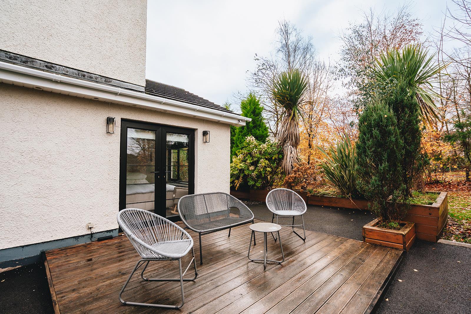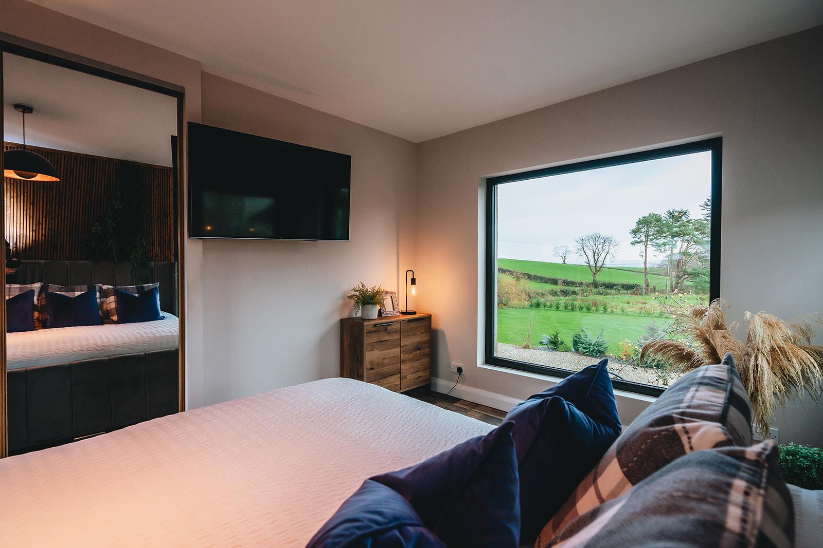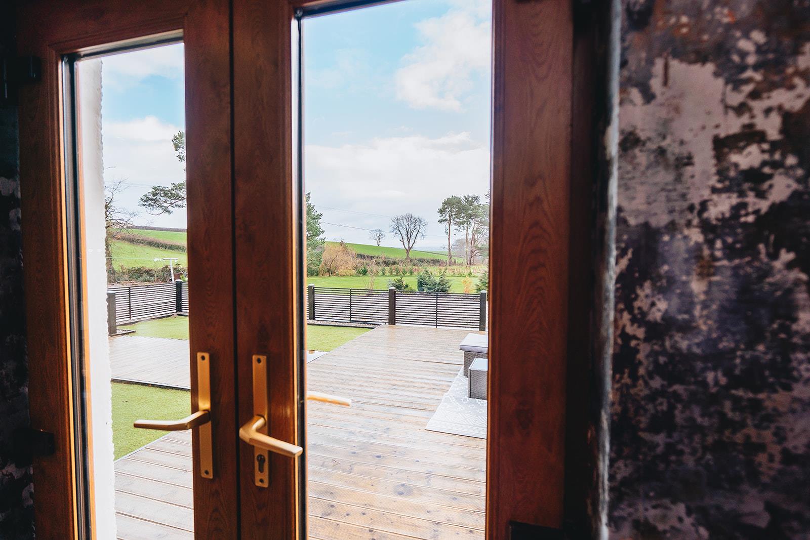 Stunning bedroom which has recently been refurbished to include a dropped ceiling with concealed lighting, tiled floor, low voltage spotlighting and French doors to decking area.
